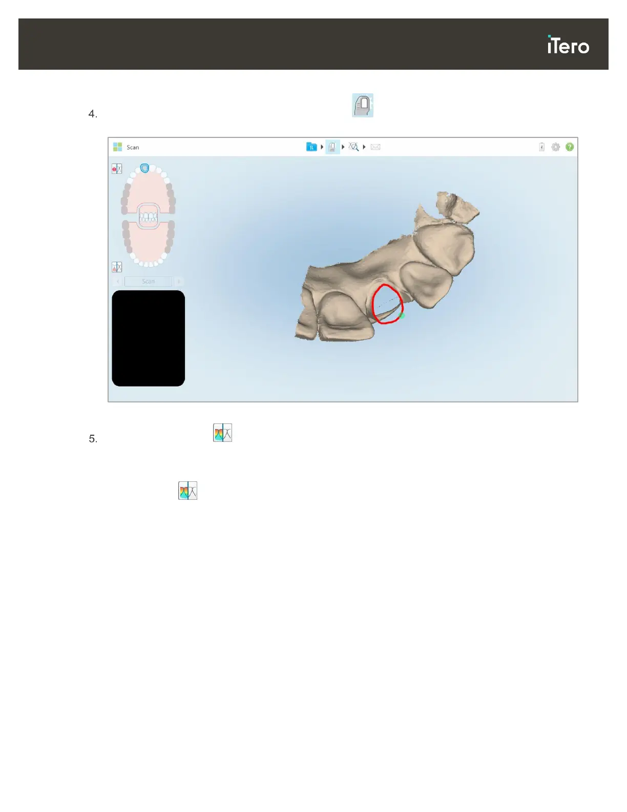 After adjusting the clearance on the patient’s tooth, tap to return to Scan mode and rescan the deleted