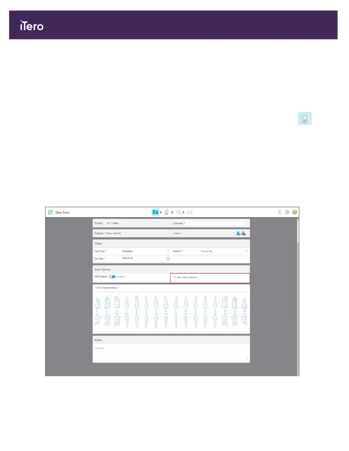 Failure to confirm a new wand barrier sleeve will block you from starting a new scan.