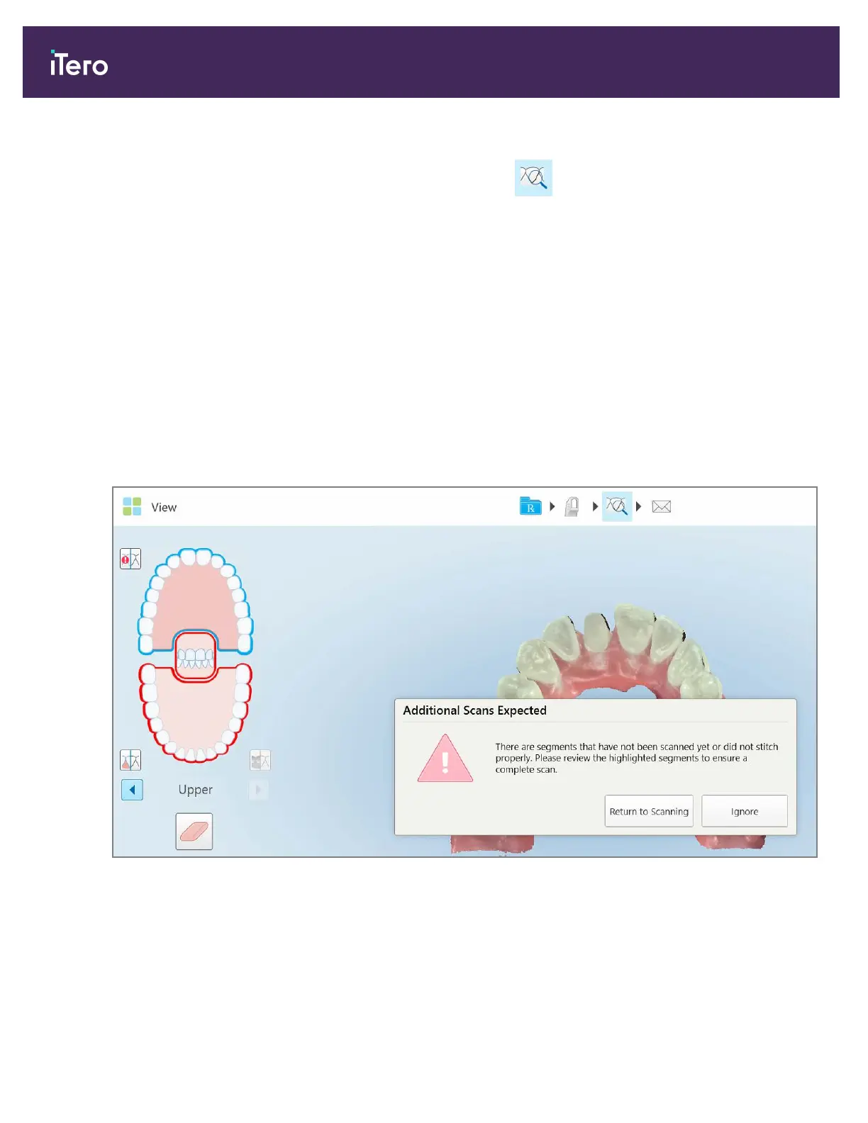If there are missing scan segments or bite scans when you tap the button, you will be notified at the beginning