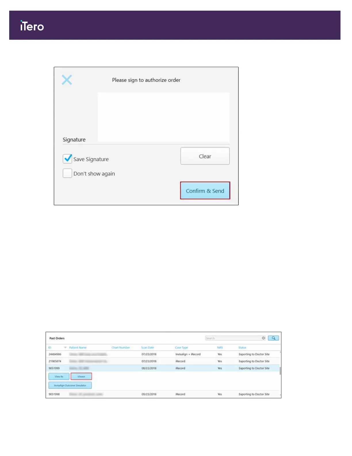 The Viewer can be accessed from Past Orders in the Orders page, or from a specific patient’s profile page.