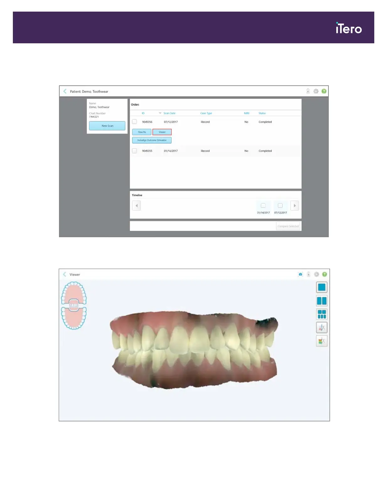 1. In the patient’s profile page, tap the scan you want to display in the Viewer and then tap Viewer.