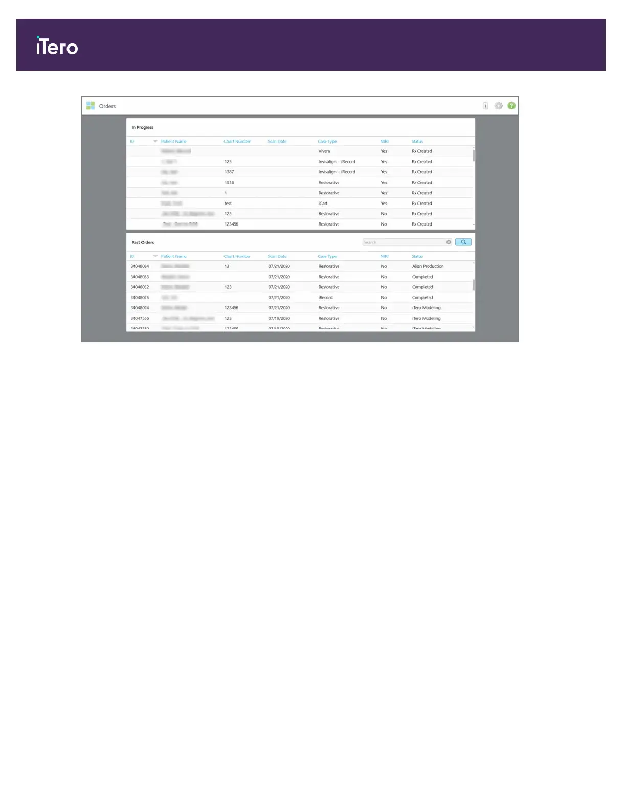 The Orders page is displayed, showing two panes – In Progress orders and Past Orders.