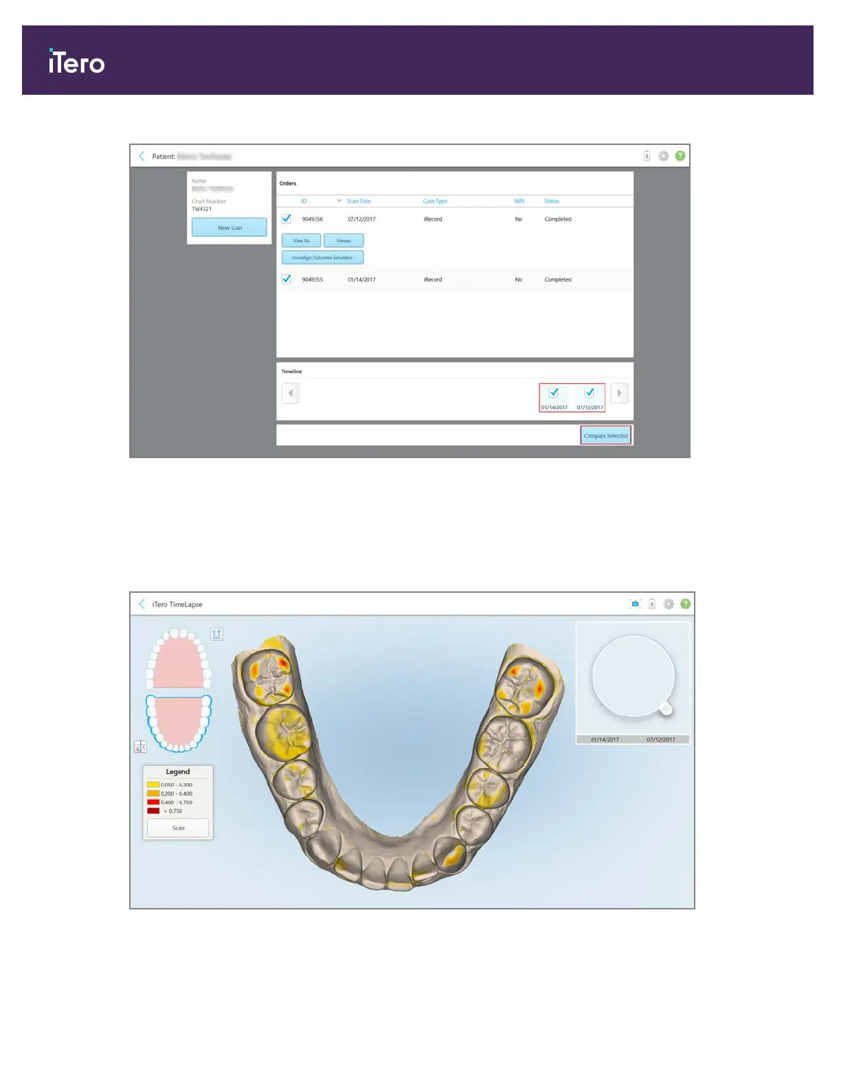 Figure 133: iTero TimeLapse – selecting the scans to compare