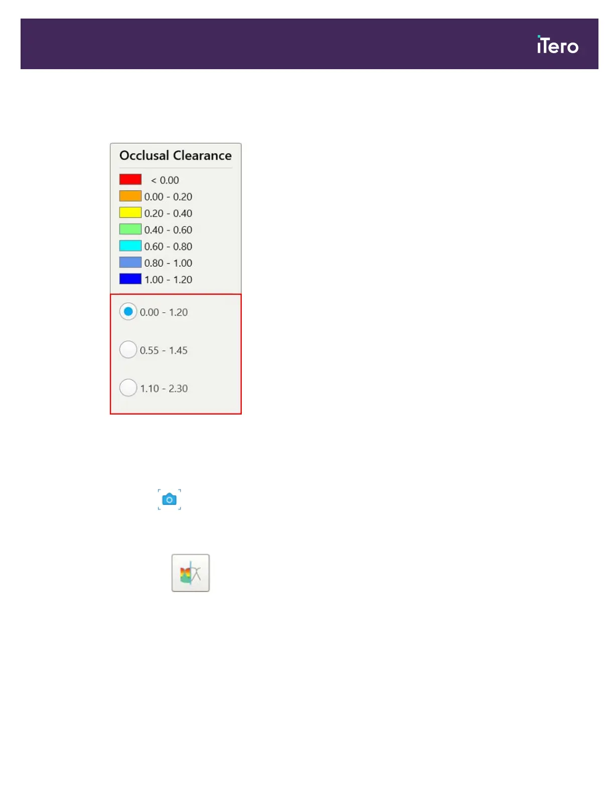 If required, tap to take a screenshot of the occlusal clearance. For more information on capturing