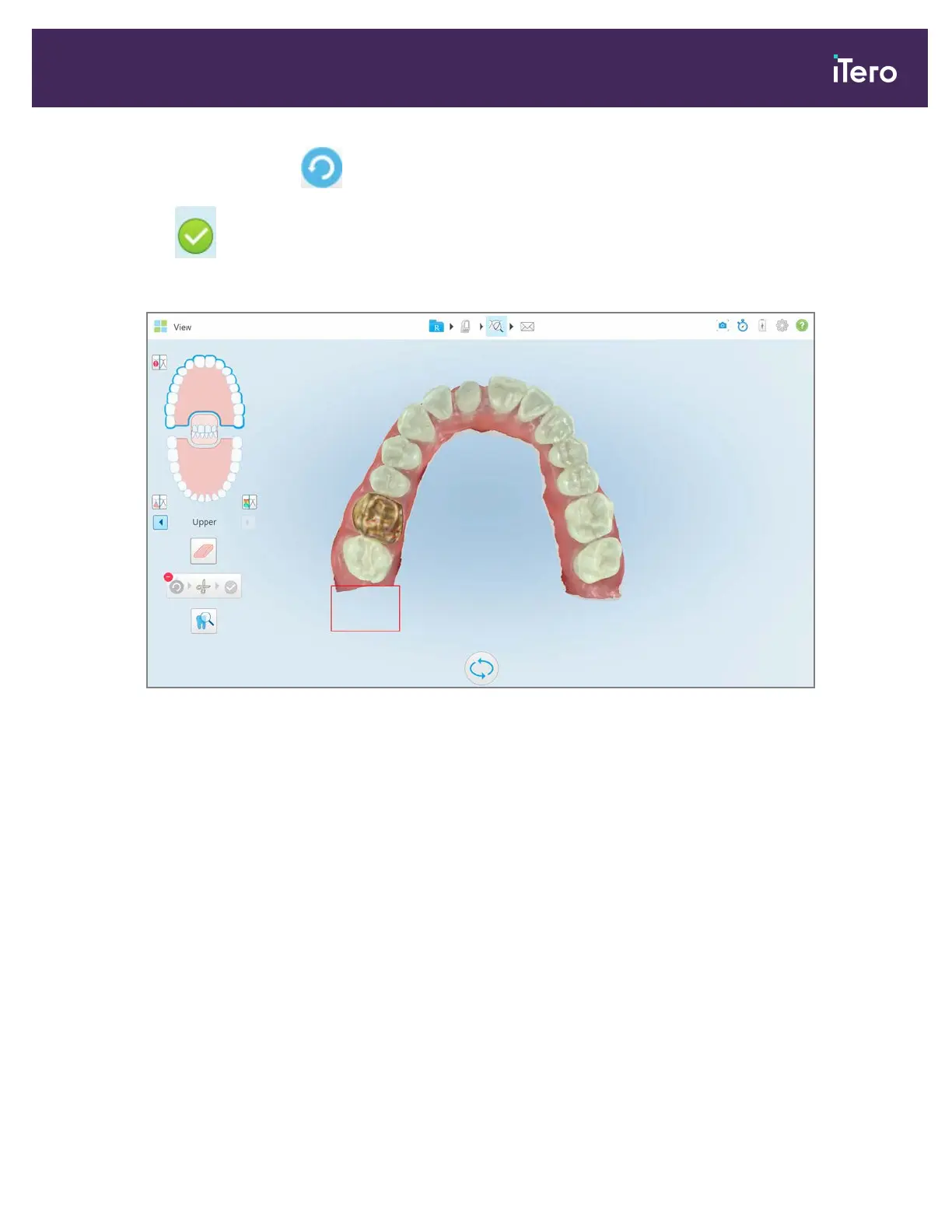 1. After scanning the prepped tooth, ensure that the green hint point is centered on the prepped tooth. Move it