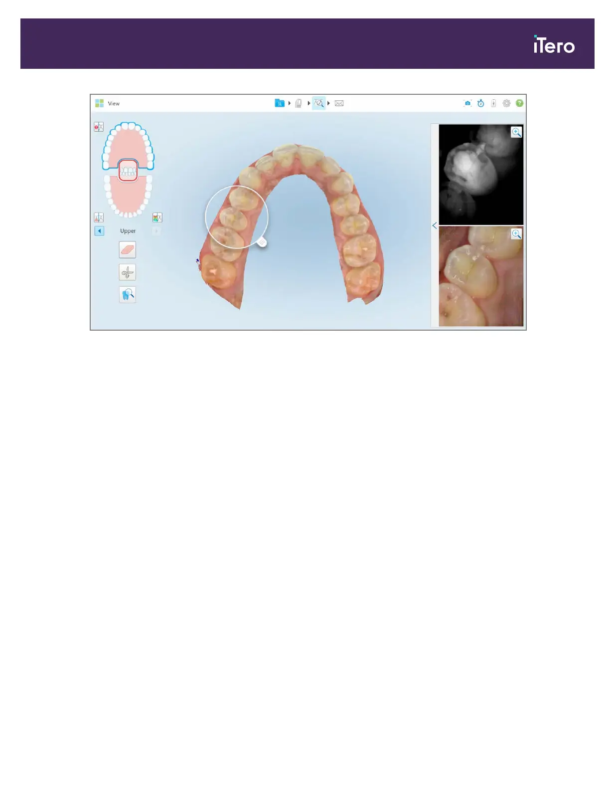 Figure 168: Image pane on the right showing the area of interest as both NIRI and colored intraoral images