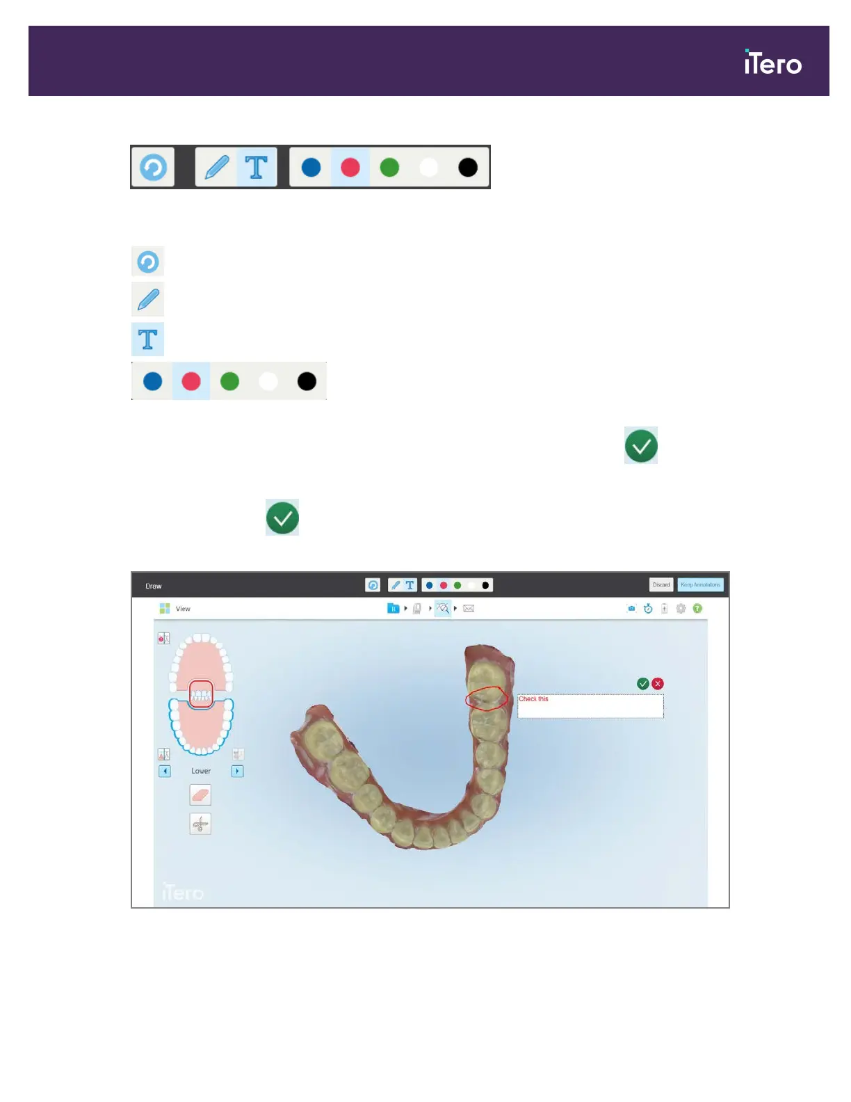 Tap the required tool and color and then add your annotations. After adding text, tap to save the text in the