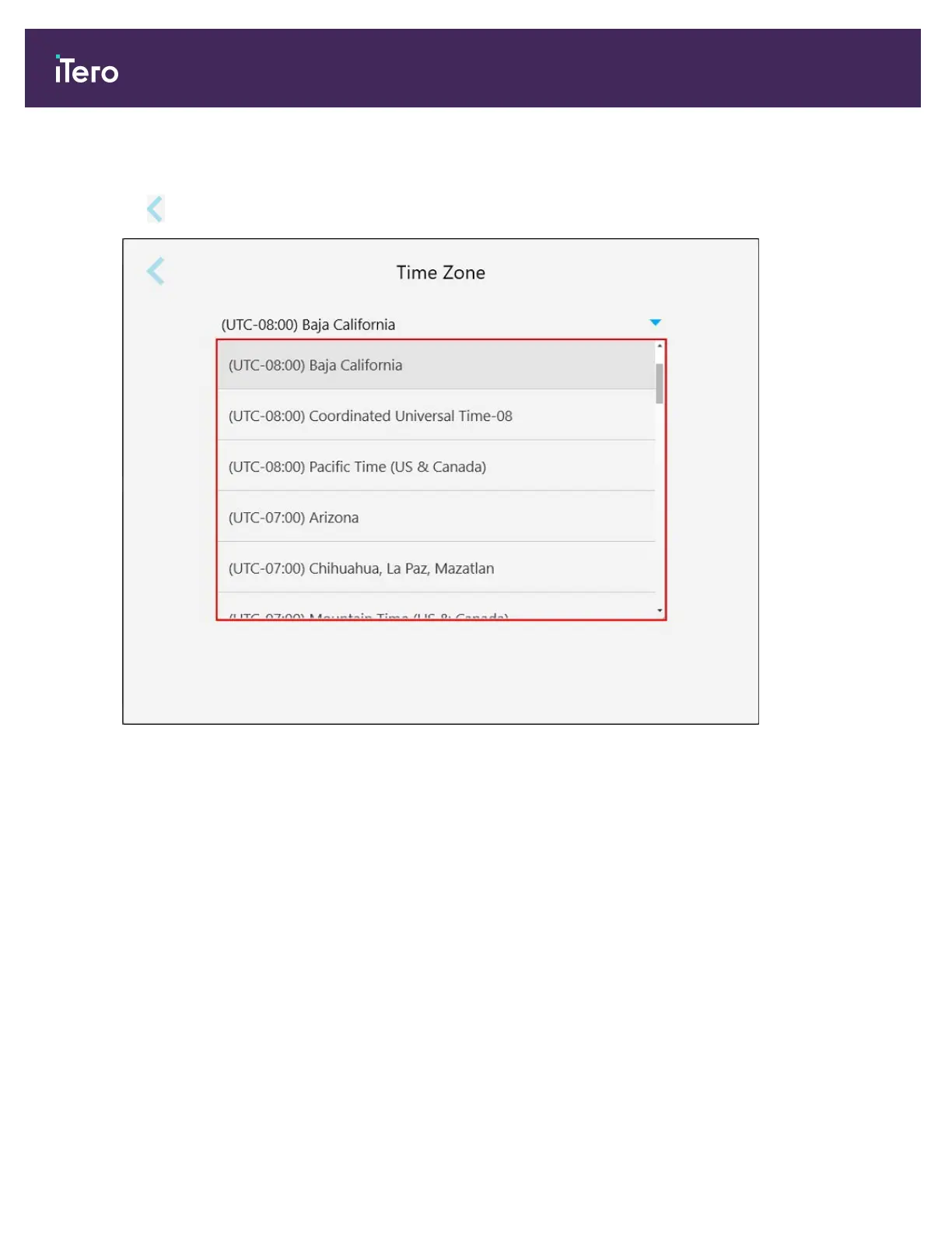 To define the time zone, tap the Time Zone button, select the time zone from the drop-down list, and then