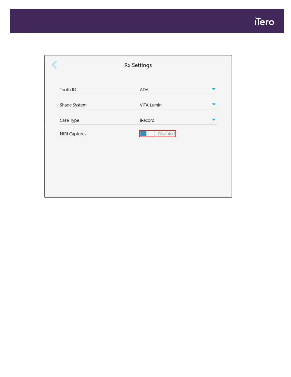 iTero Element 5D Plus - Figure 58: Rx Settings Window - NIRI Captures Option Disabled