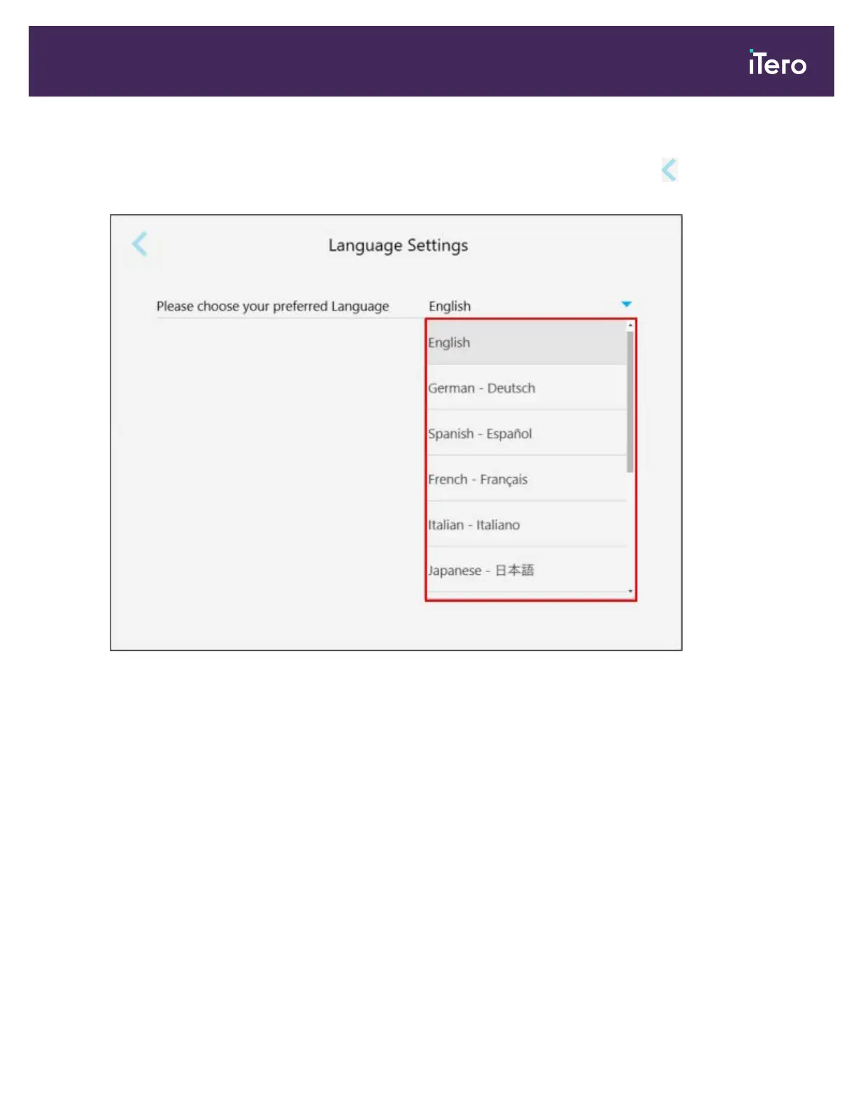 Tap the Language button, select the required language from the drop-down list, and then tap to save the changes