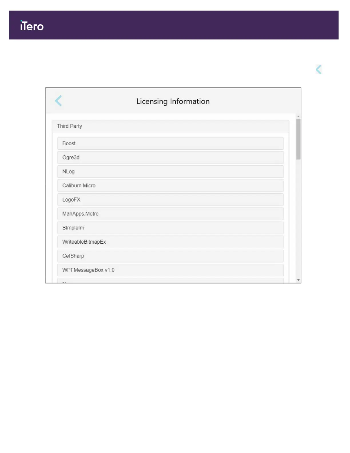 iTero Element 5D Plus - Figure 63: Licensing Information Window
