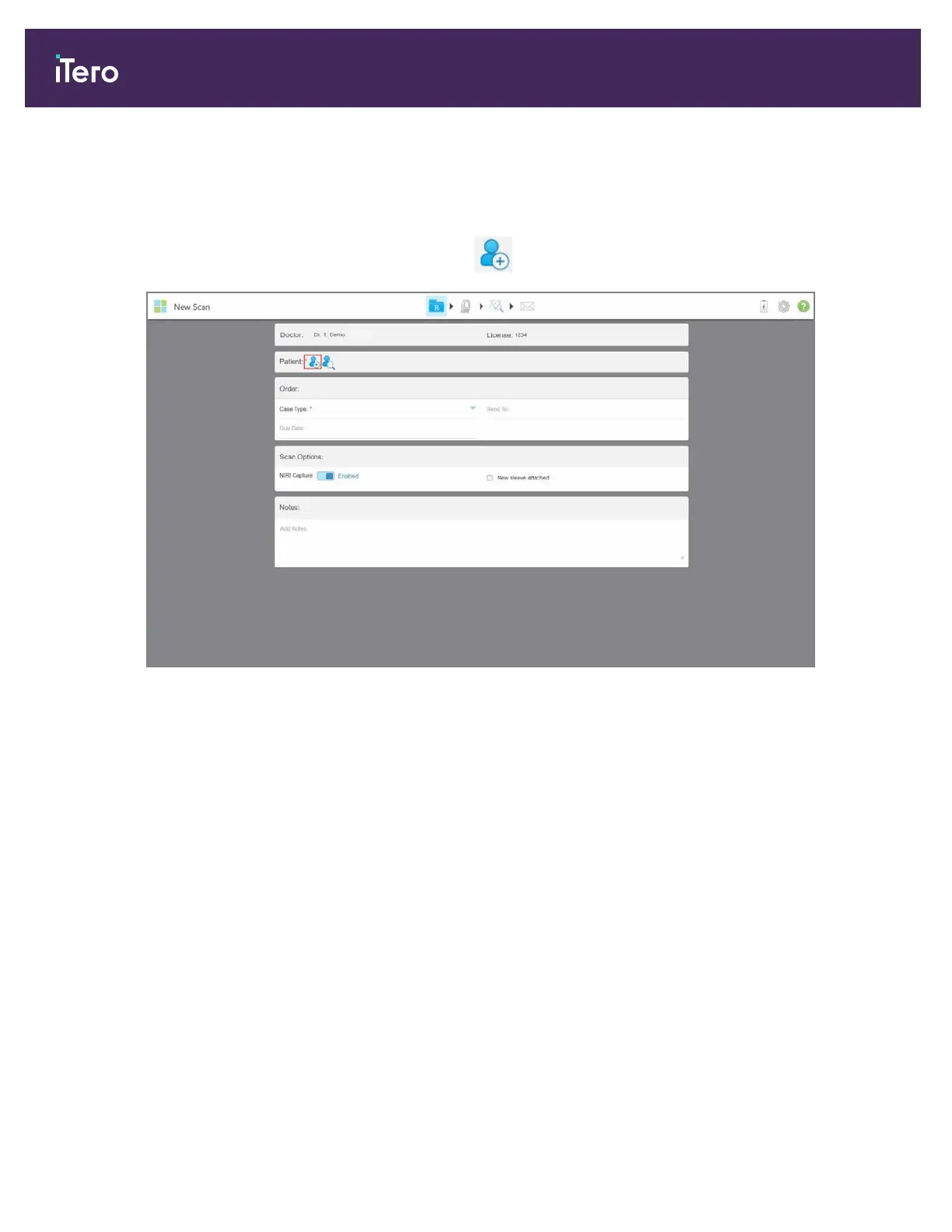 In the New Scan window, in the Patient area, tap .