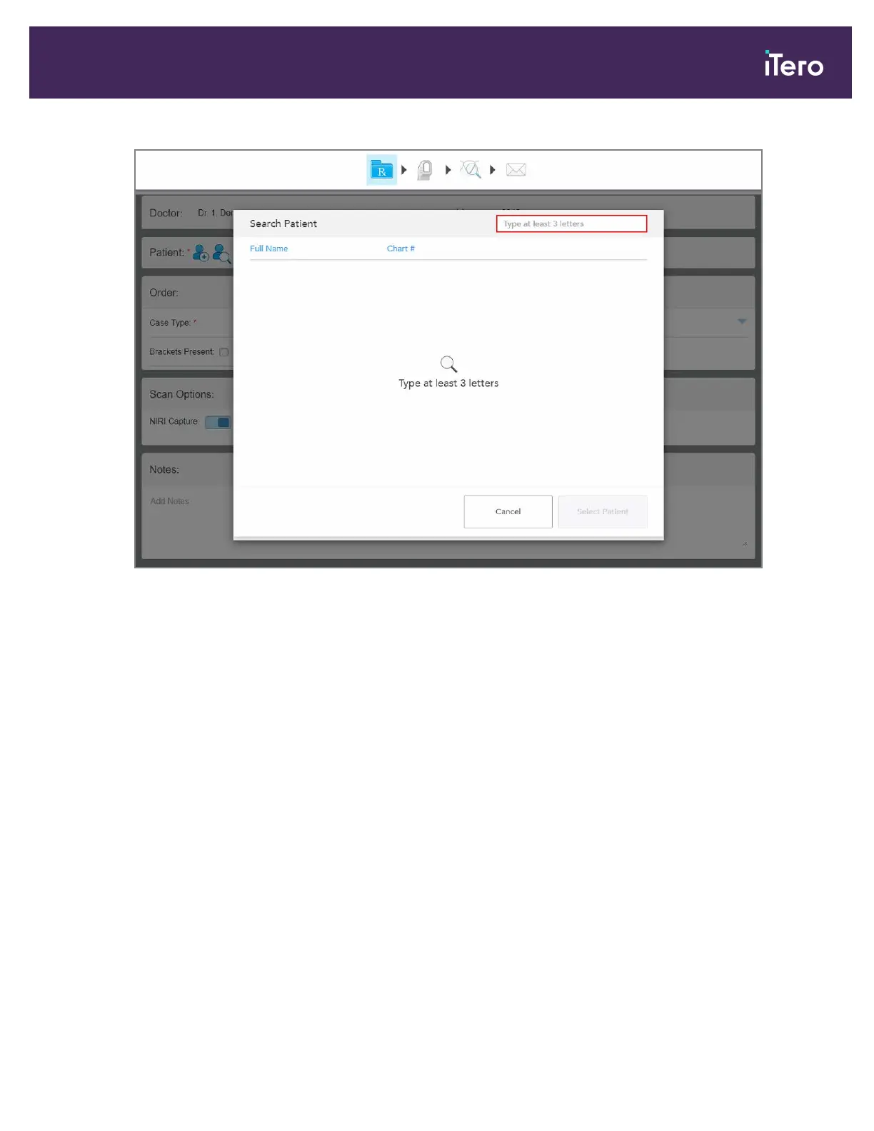 iTero Element 5D Plus - Figure 77: Search Patient Window with Search Field