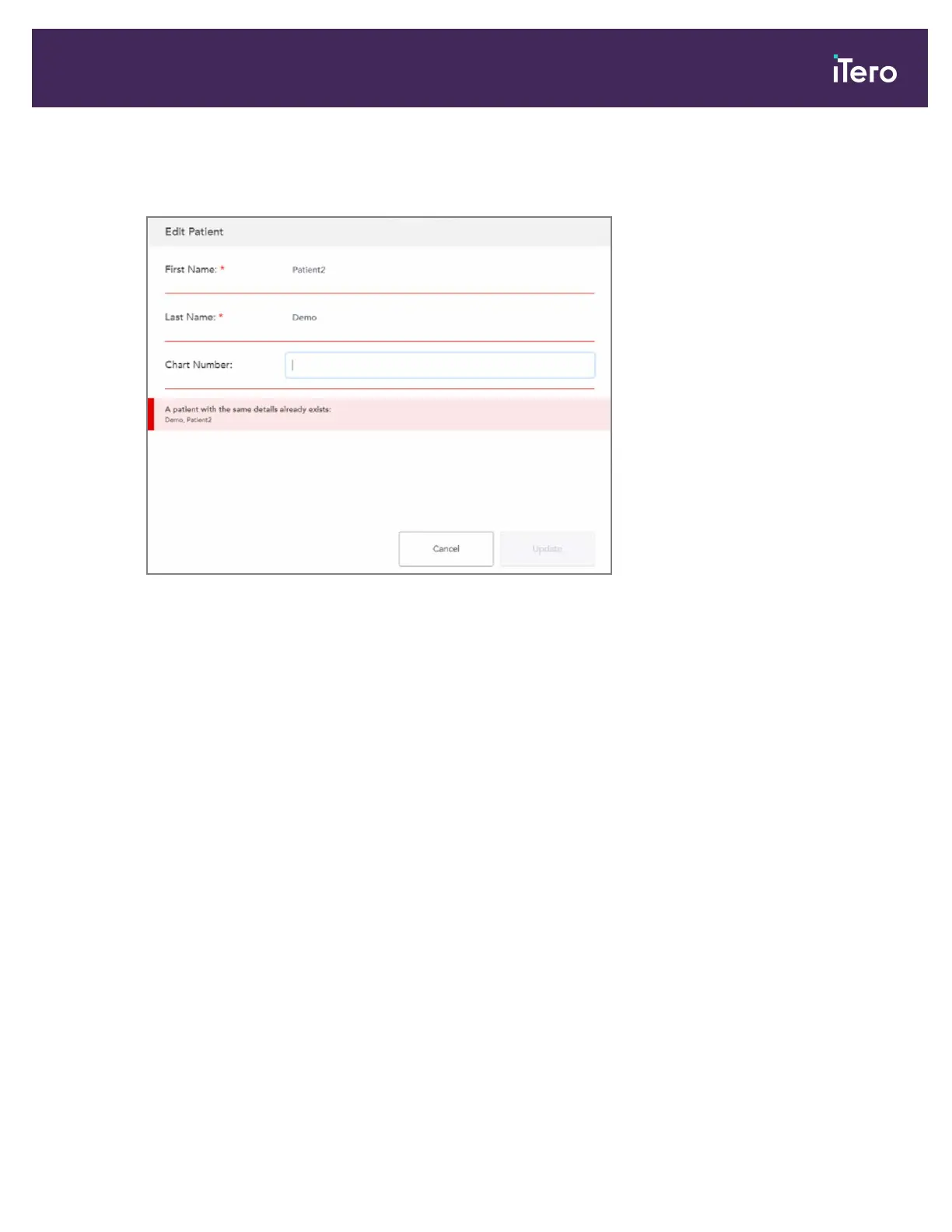 If, while editing the patient’s name, you enter the same details as an existing patient, a message is displayed