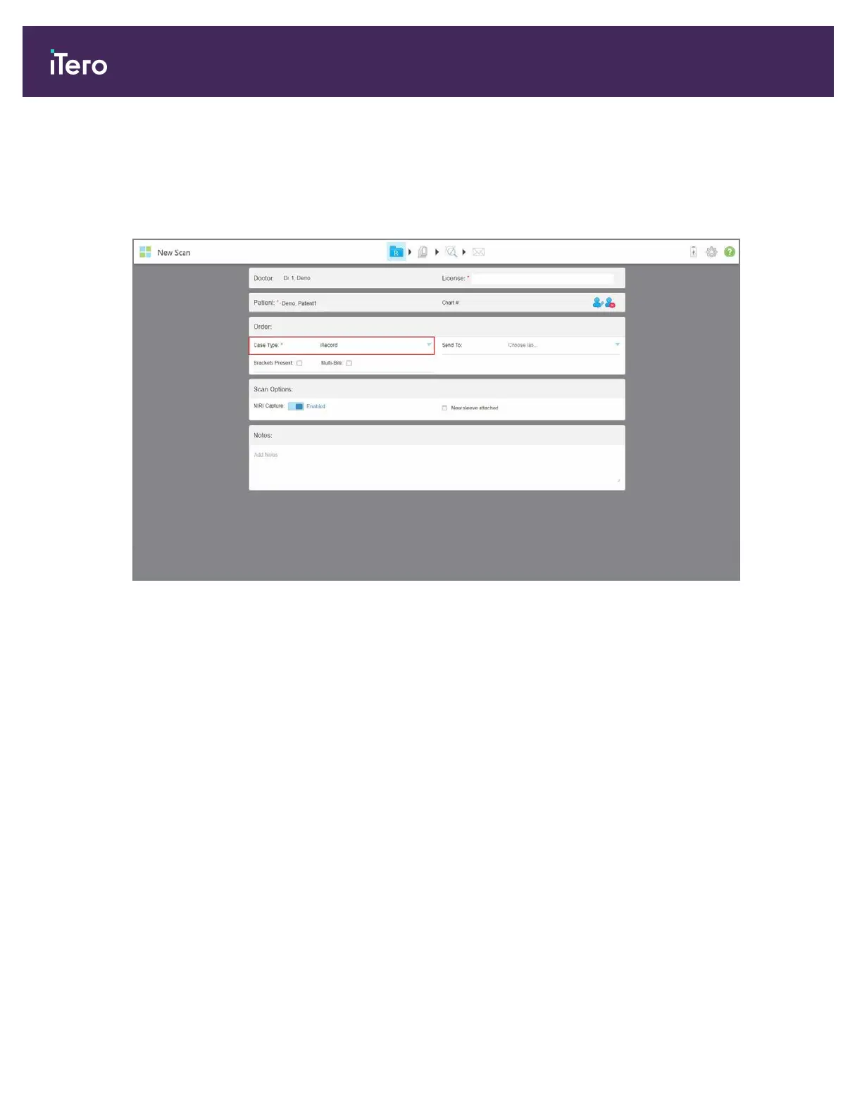 4. If relevant, from the Send To drop-down list, select the lab to which the scan should be sent.