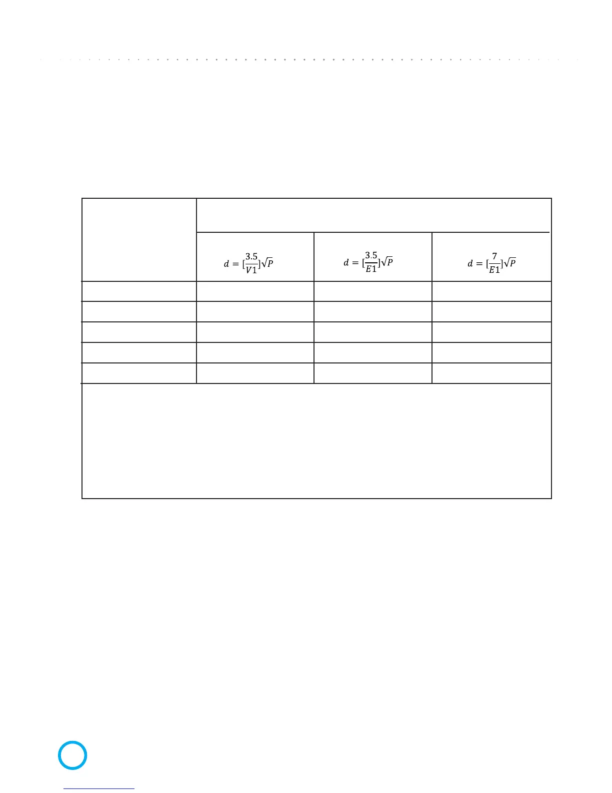 d in metres (m) can be estimated using the equation applicable to the frequency of the transmitter,