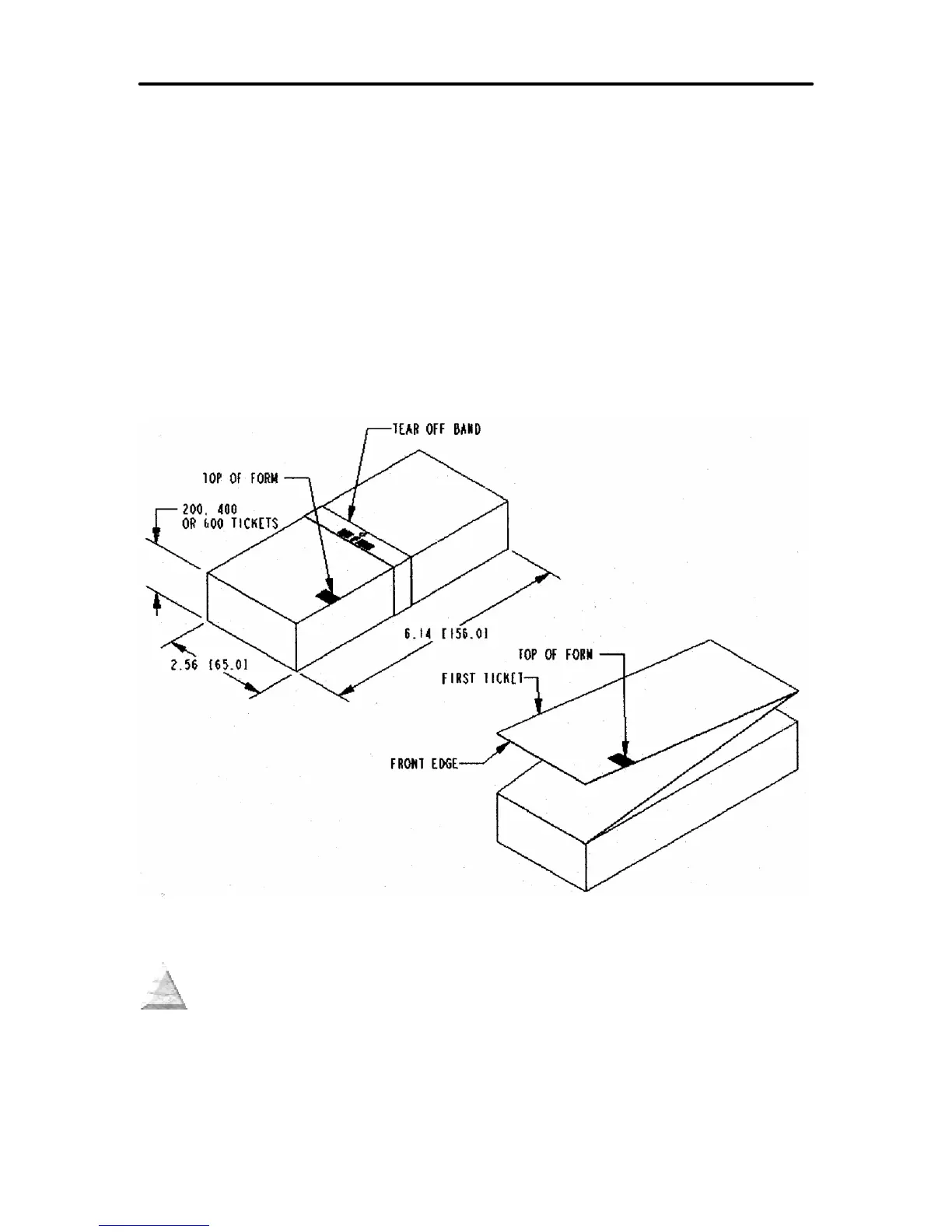loaded in the ticket box. The stack must be oriented so that the Black Dot/Top of Form