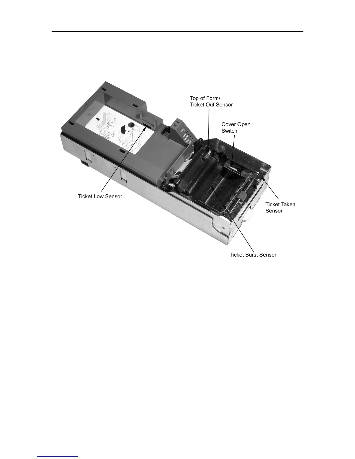 A Ticket Low Sensor optically senses the number of tickets remaining in the printer’s