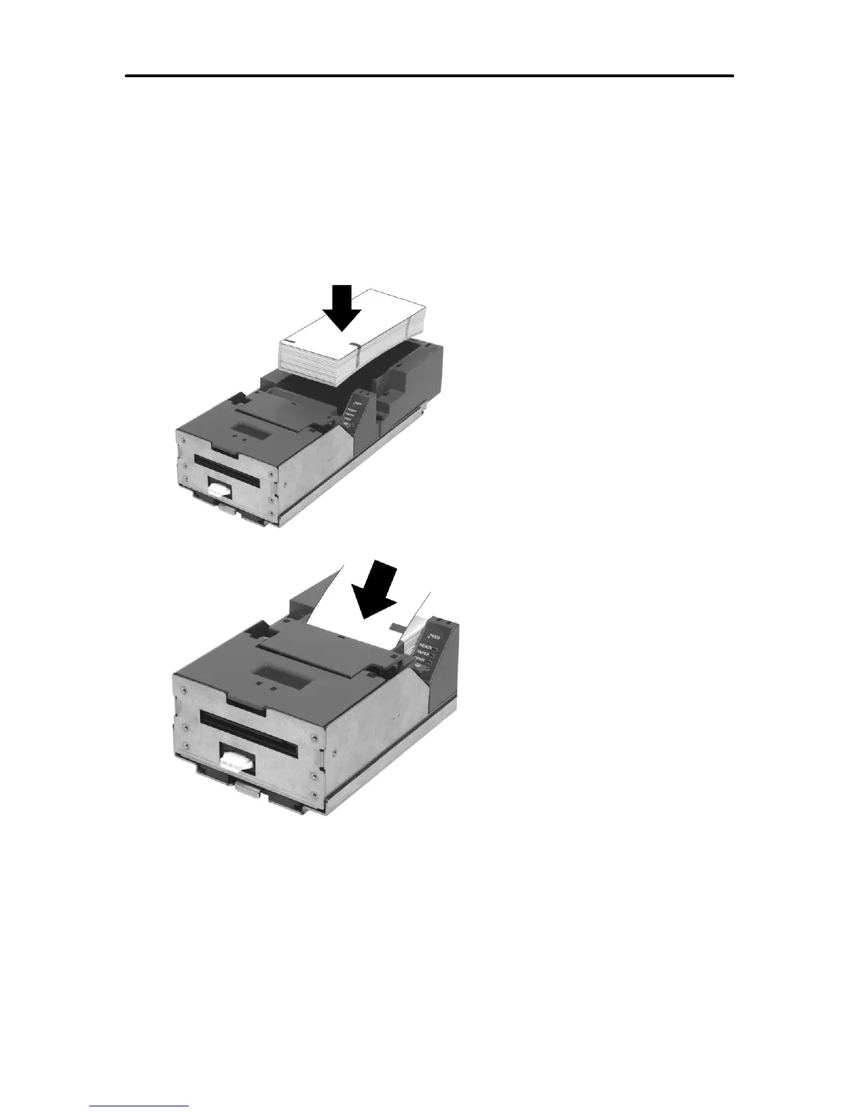 of the stack must be inserted into the printer by hand. The Epic 950 printers’ ticket tray is
