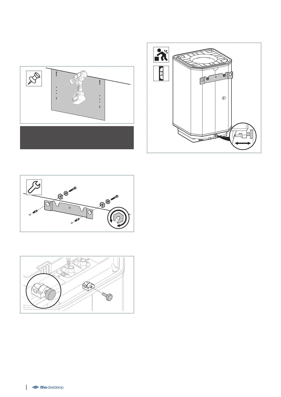 g) Level the heater vertically by rotating the levelling foot in or out.