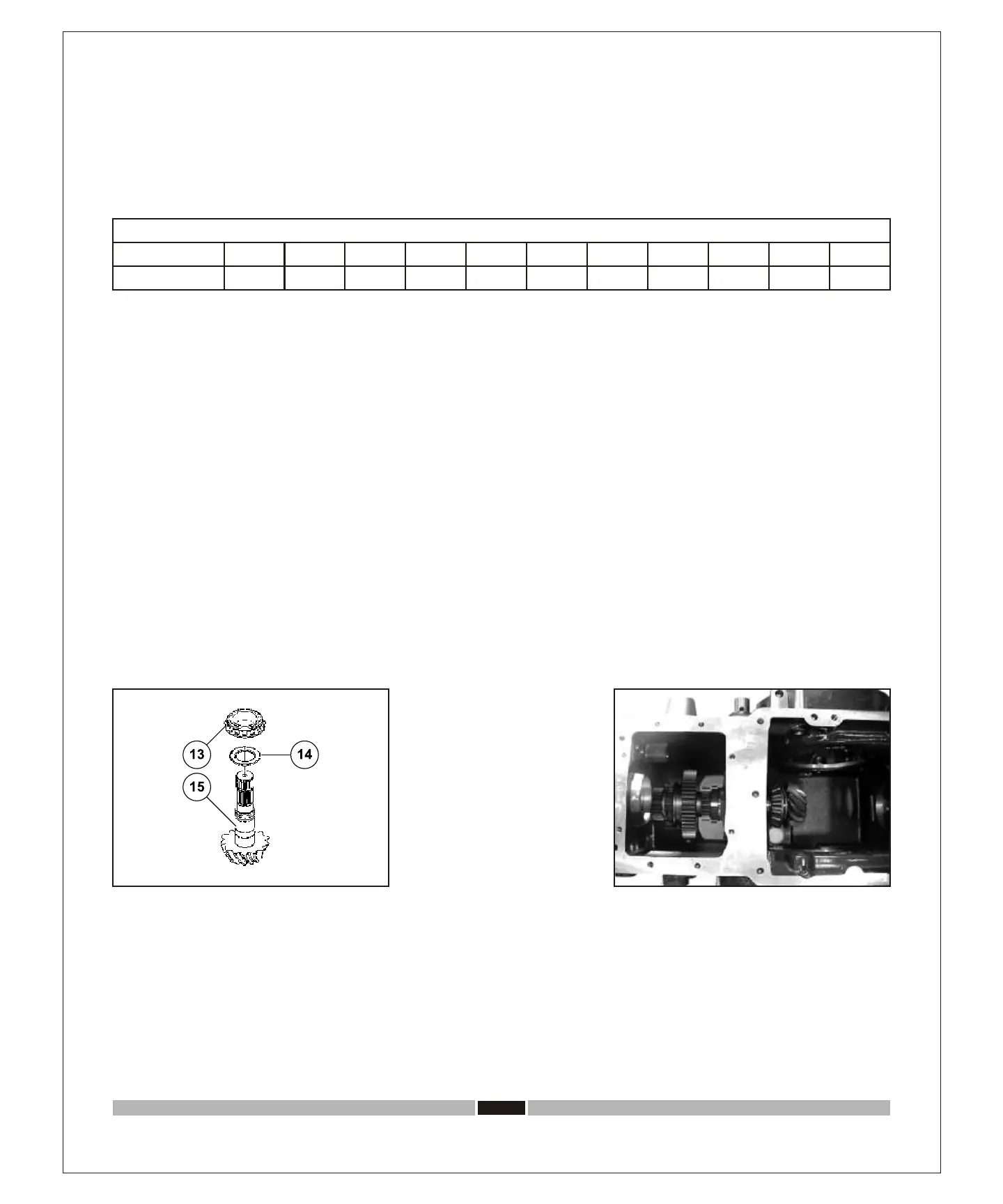 10. Once you have chosen and inserted suitable shim (14) with chamfer against the gear, force bearing cone (13) into the