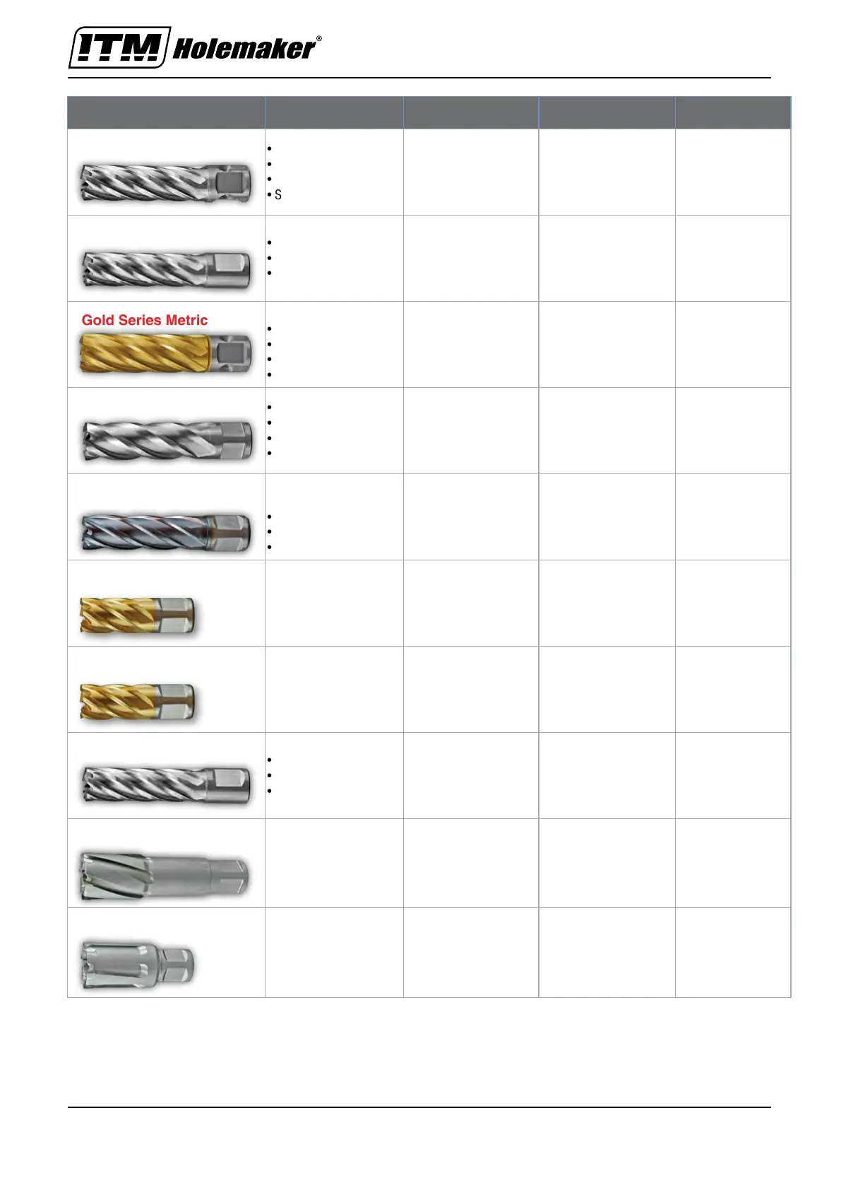 Cutter Type Features Diameter Available Cut Depth Available Applications