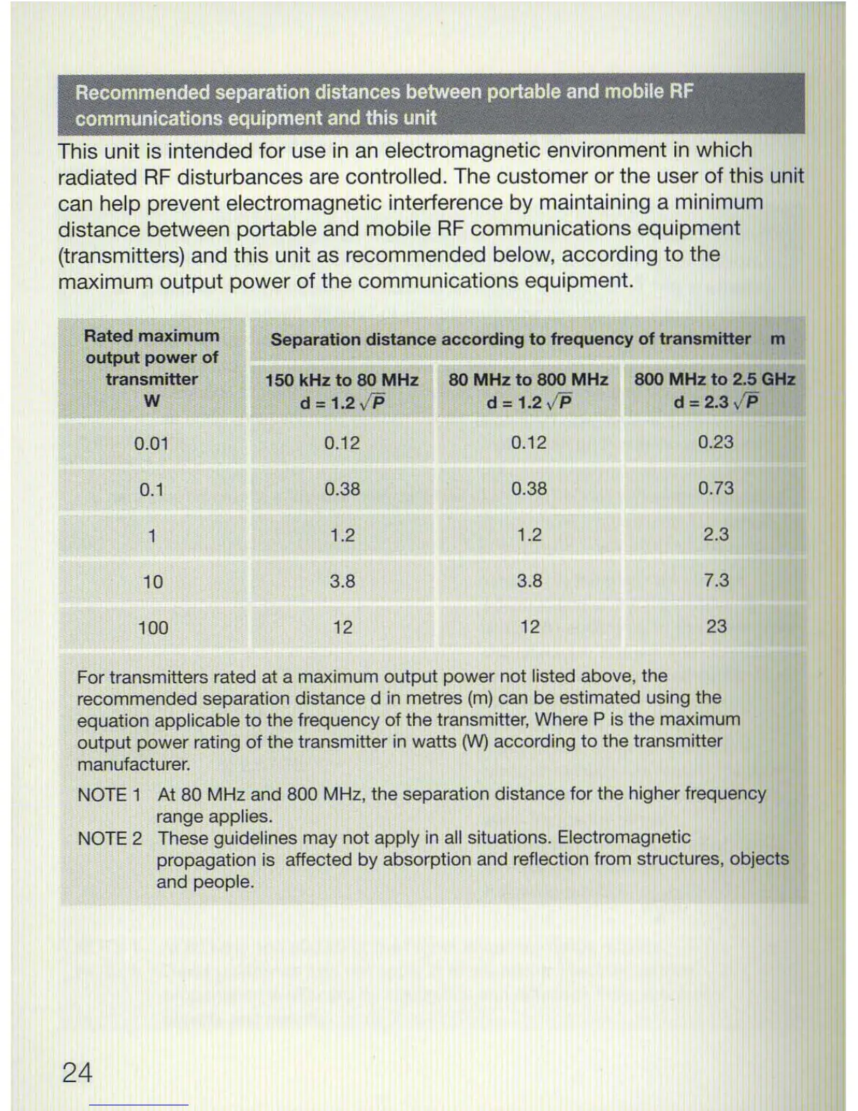 ITO ES-130 - Recommended Separation Distances for RF Communications Equipment
