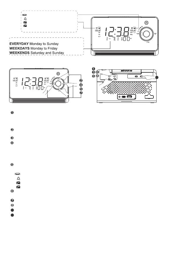 Press circulate the silver rotating knob to select the alarm day mode(You can set