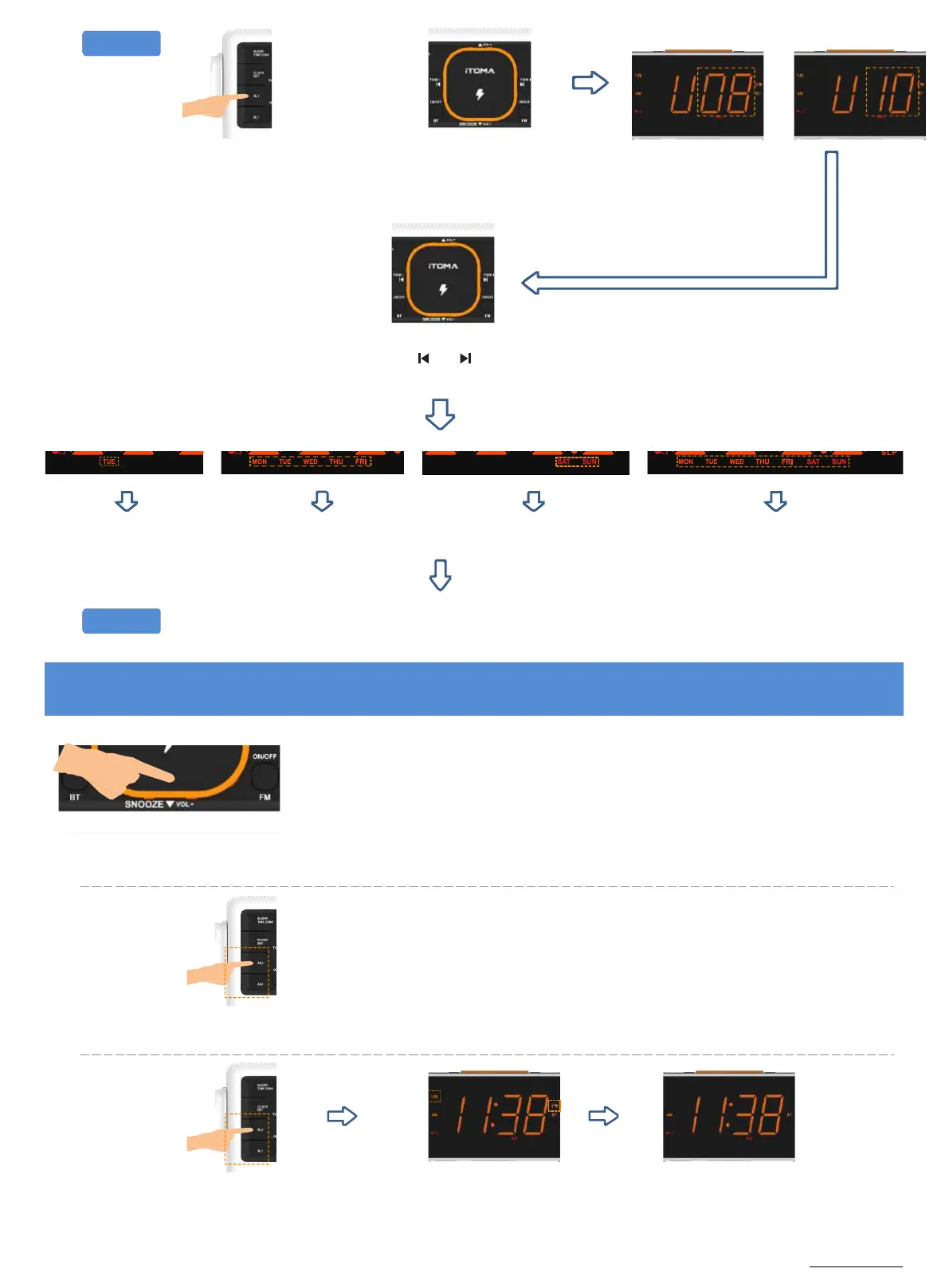 1. SNOOZE : Alarm will pause 9 minutes for each press, 6 times at most.