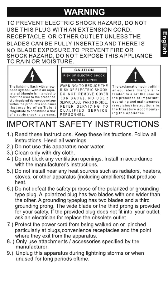 iToma CKS910 - WARNING; IMPORTANT SAFETY INSTRUCTIONS