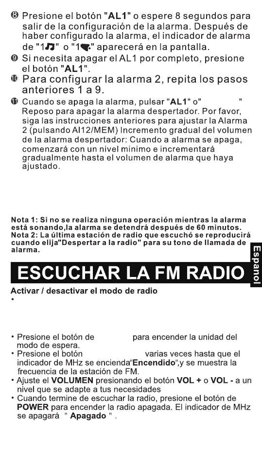 el botón SNOOZE parapausa durante 9 minutos. El indicador