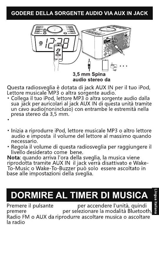 passa alla modalità di funzione AUX e l'indicatore si accende.