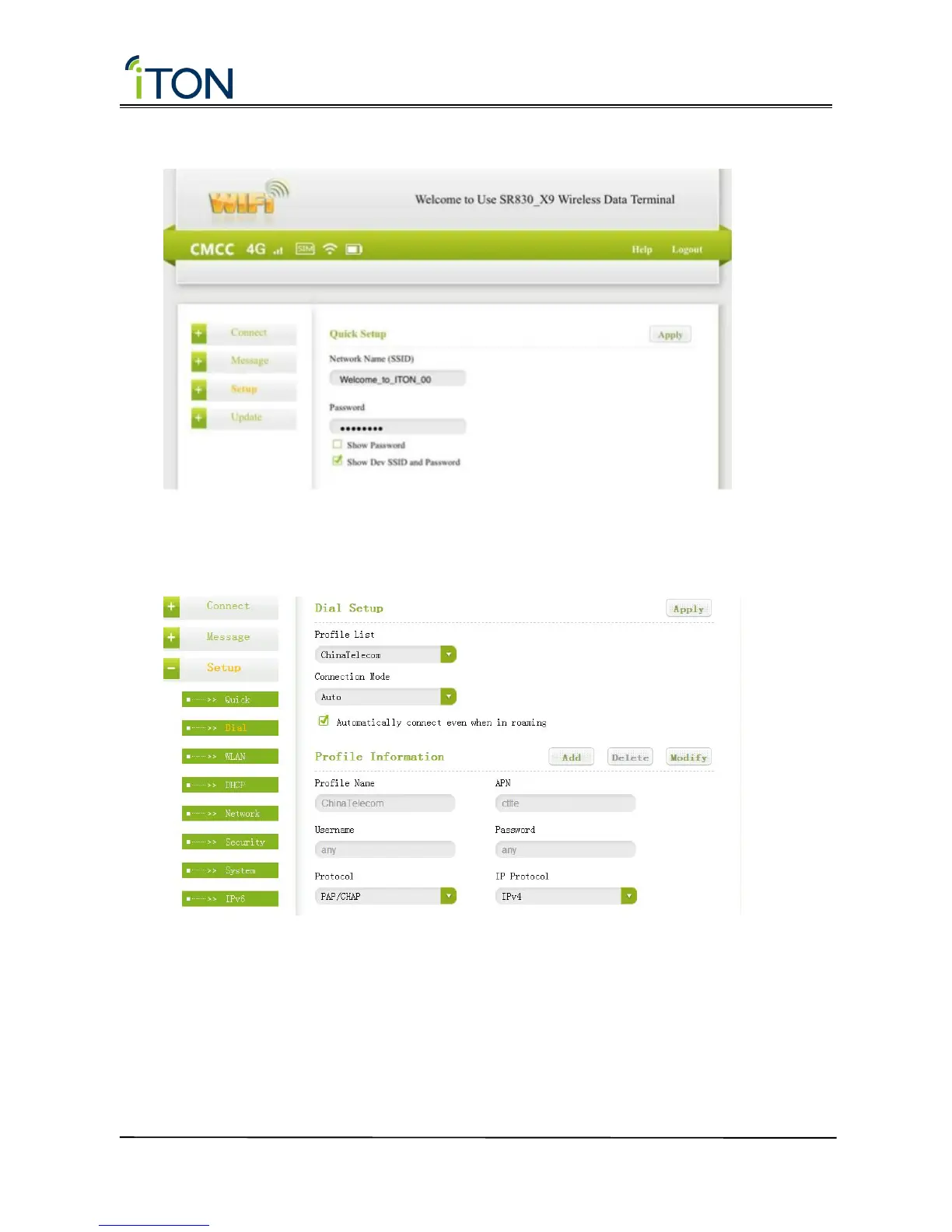 Note: If the APN is not automatically configured, select “Setup → Dial → Profile
