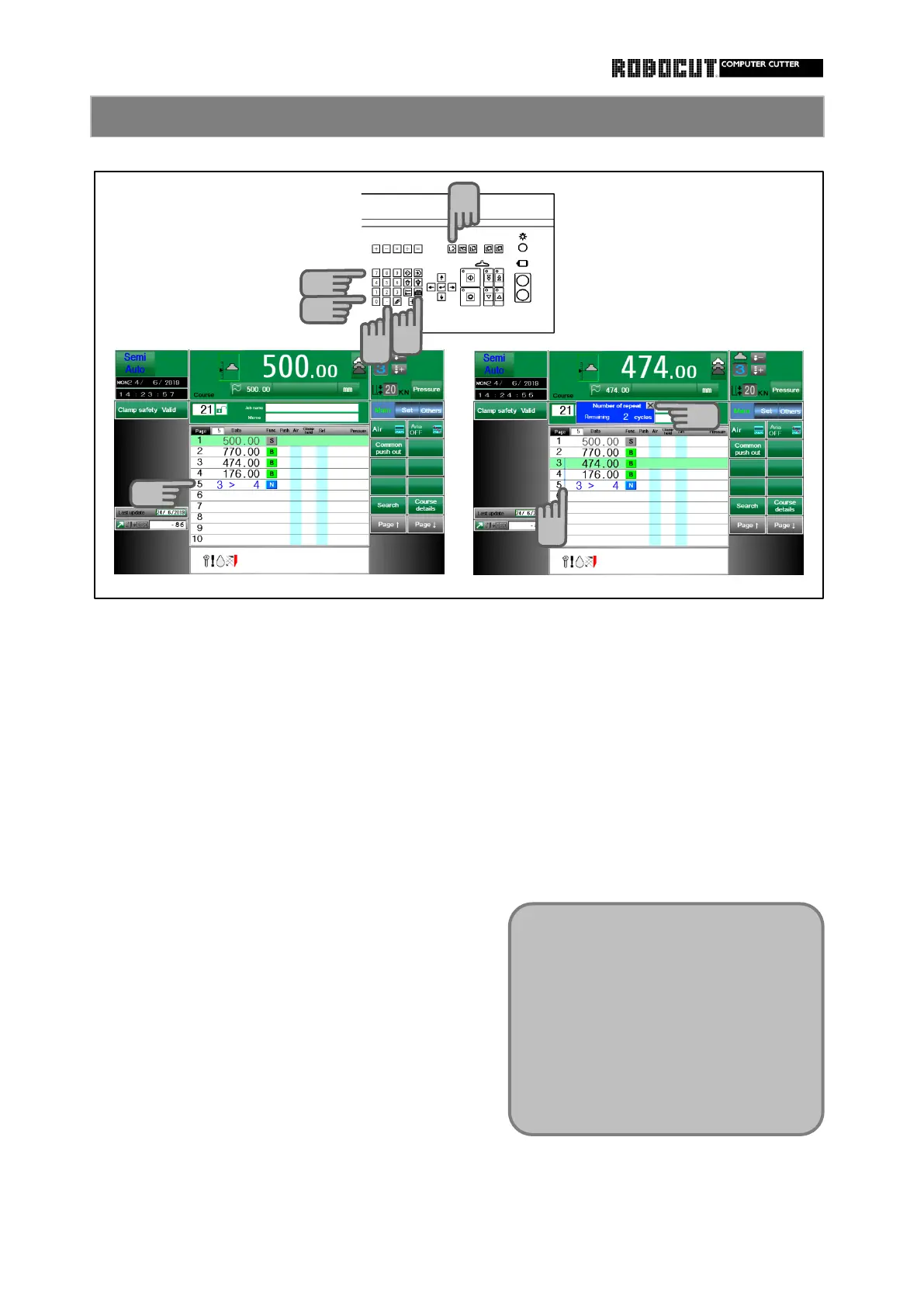 and press the number of repeat cycles This line is displayed, too, at the number