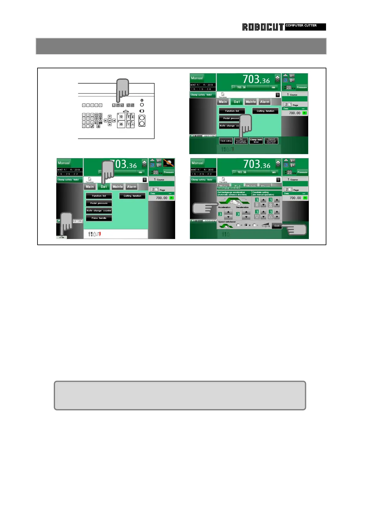 Press 【 Set backgauge accelaration 】 .