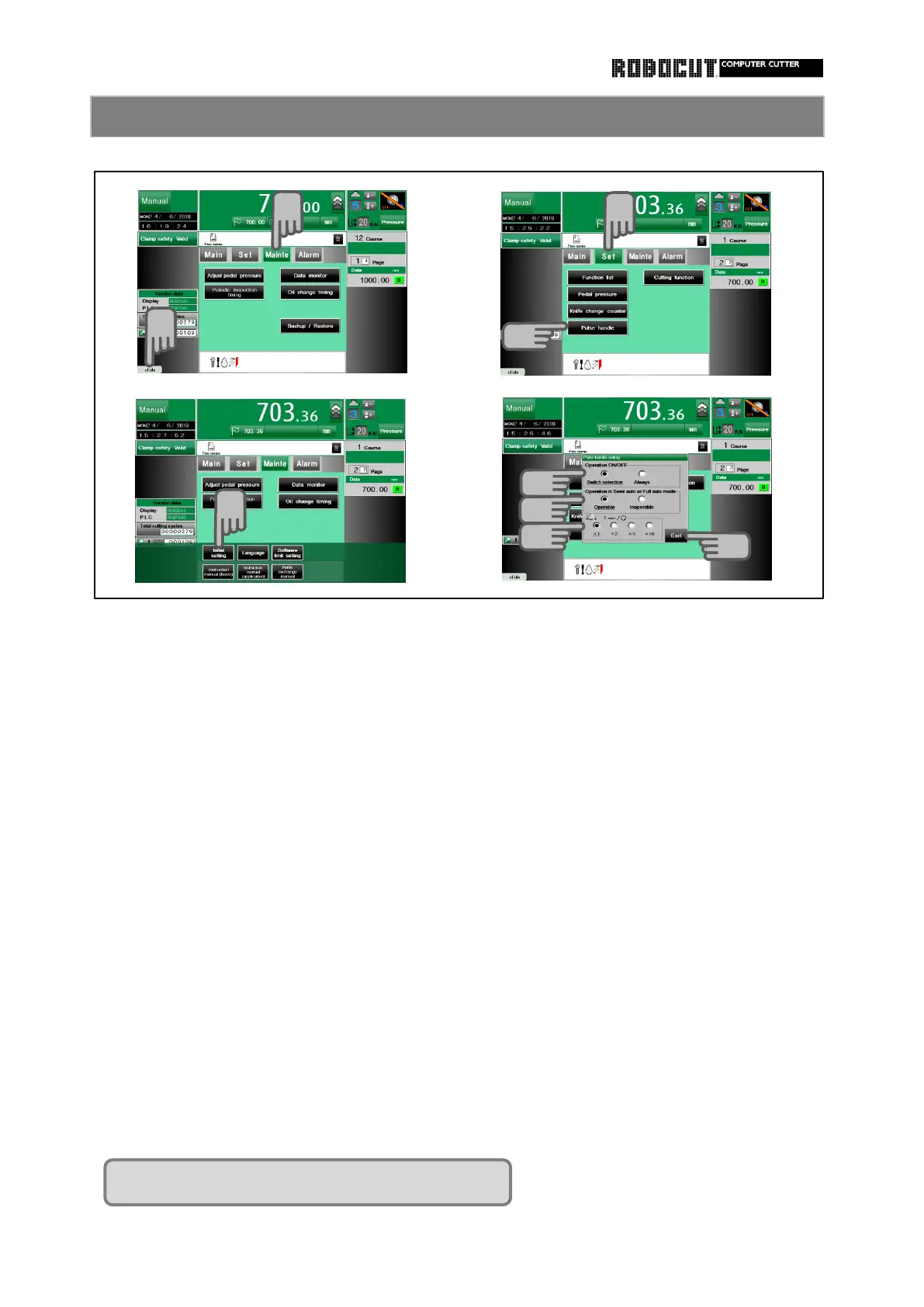 Press sub mode menu 【 Mainte 】 . Selwct the manual mode.