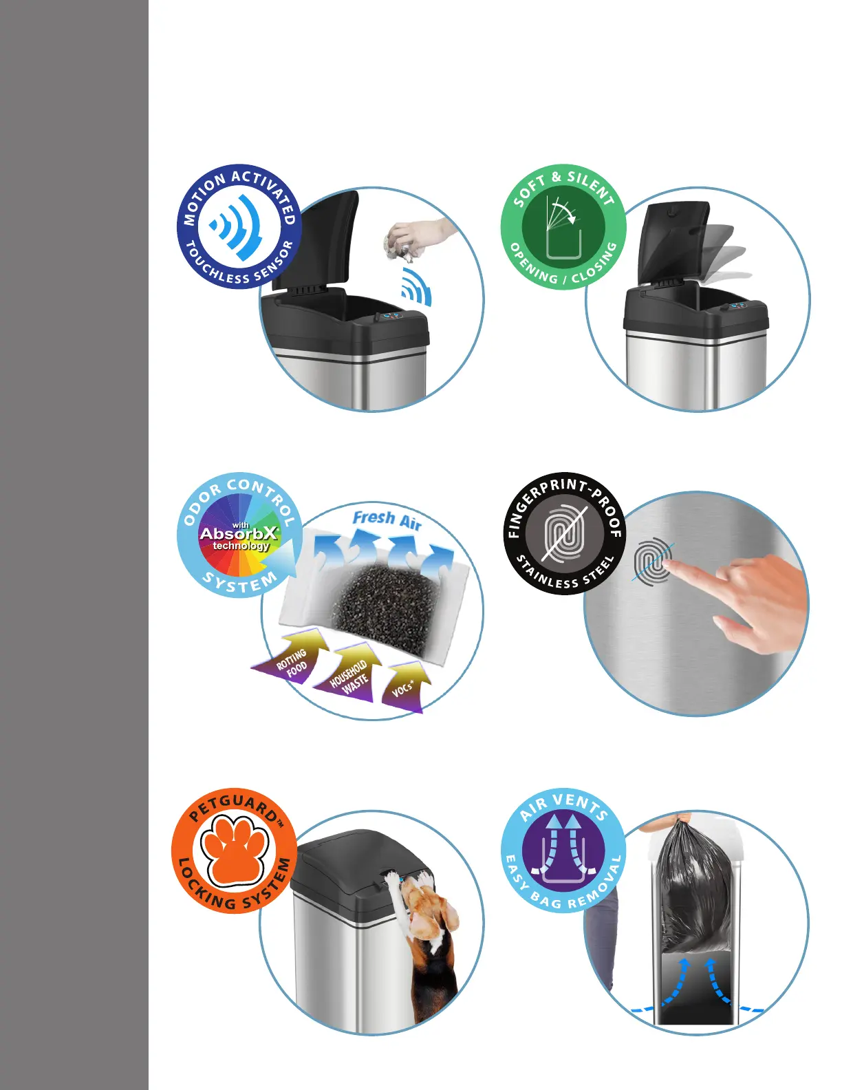 Itouchless DZT13P - Product Features; Motion Activated Touchless Sensor; Soft & Silent Opening;Closing; Odor Control System