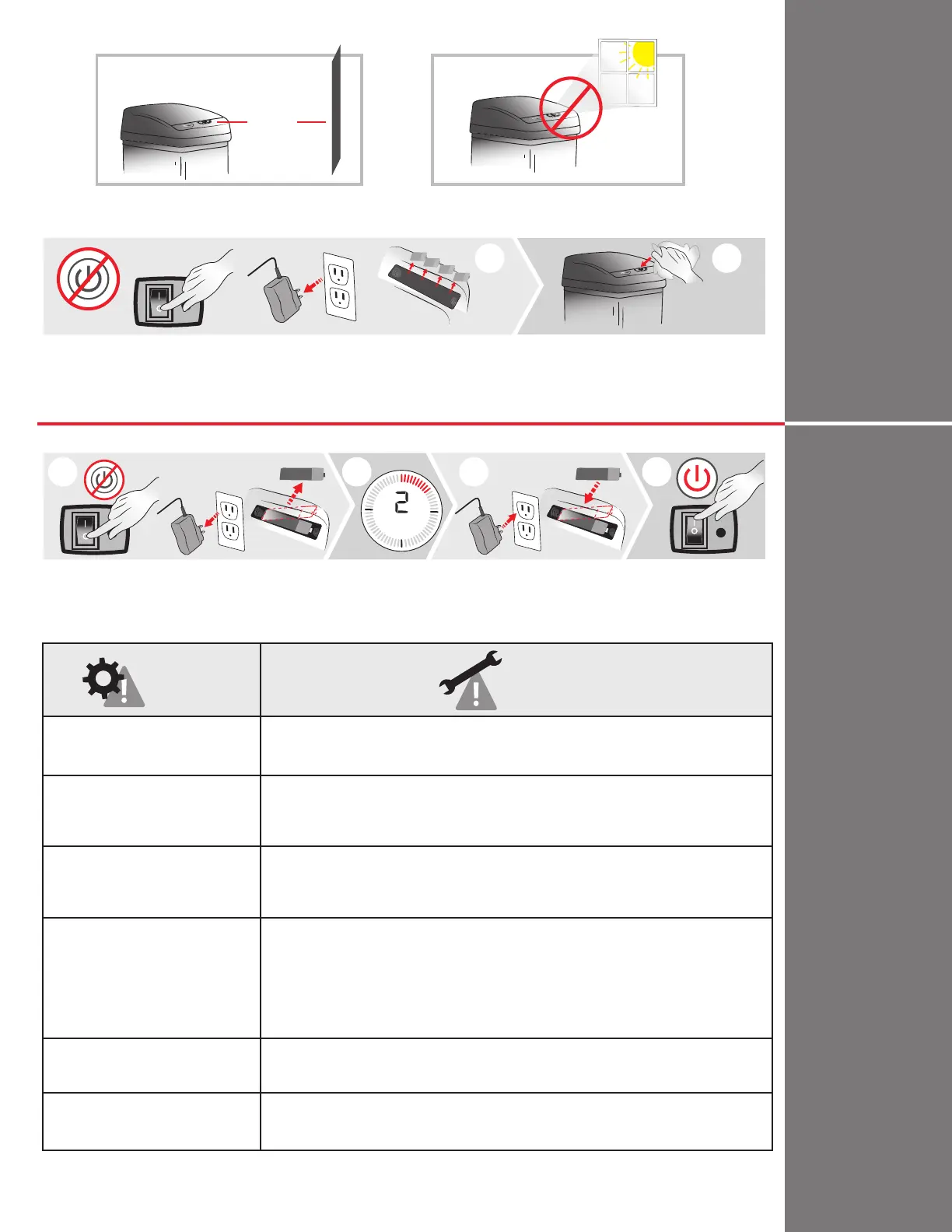 TO RESET: Turn o power, unplug adapter and remove batteries, and let trash can sit for at