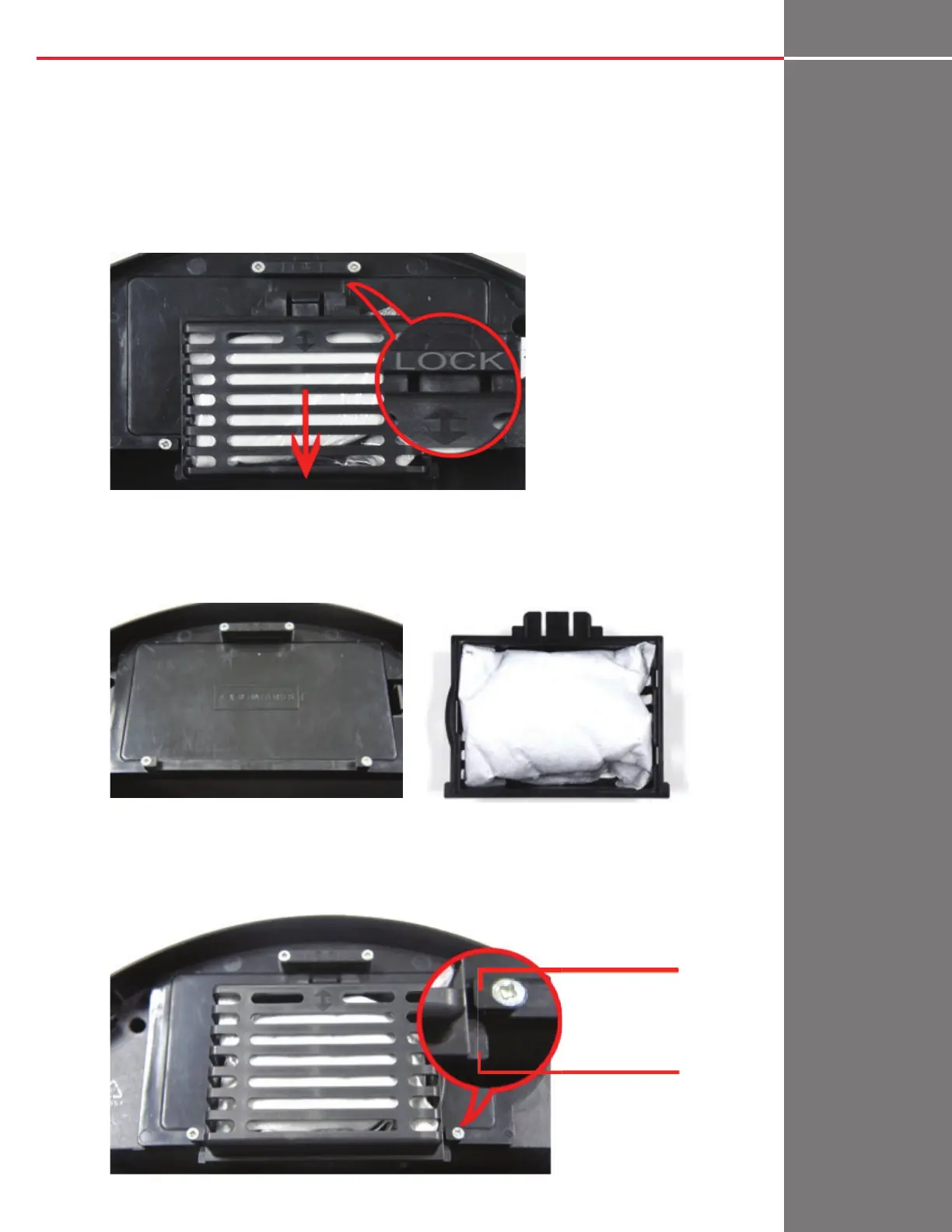 2: À l’intérieur du compartiment désodorisant se trouve le ltre à charbon actif. Ouvrez et