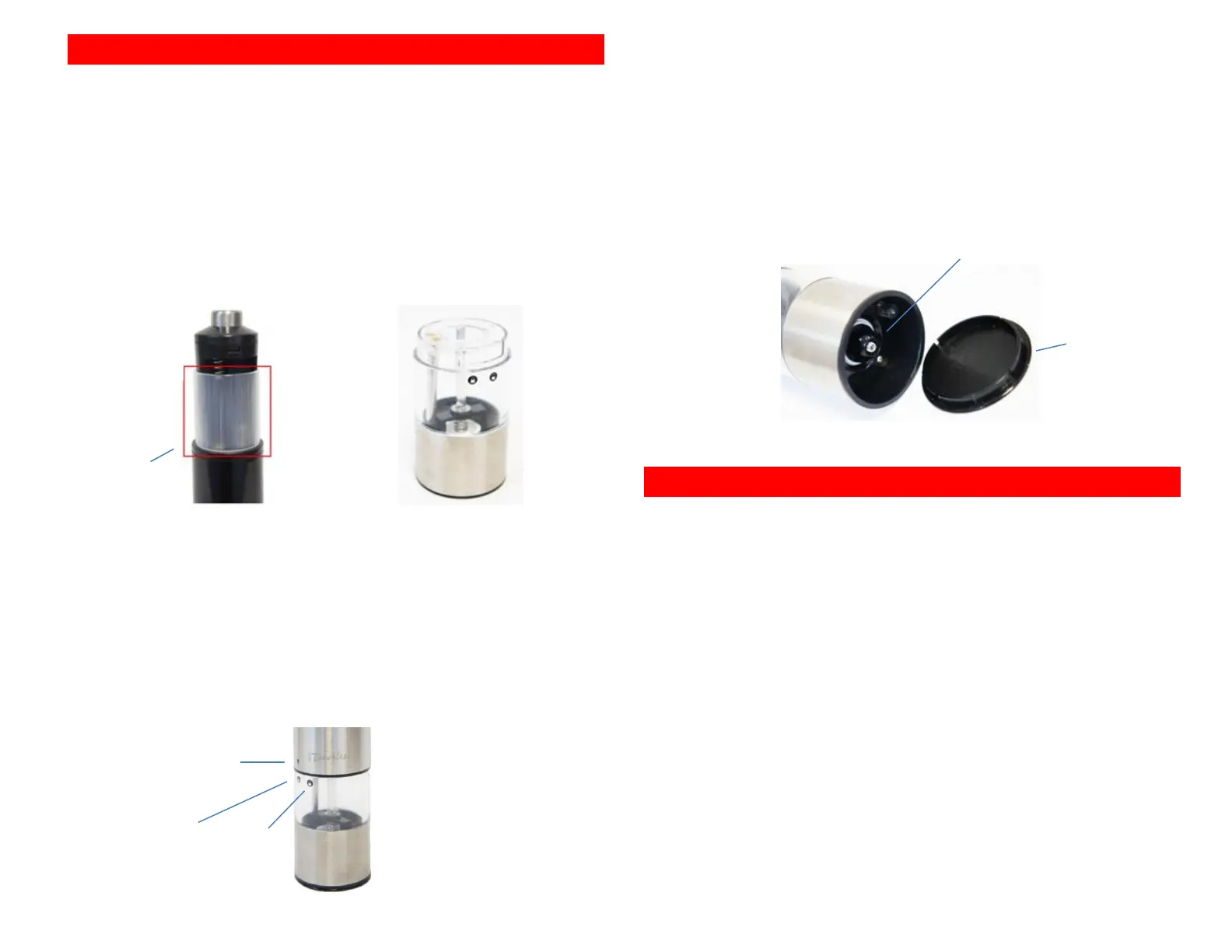 base (Figure 2) to load pepper or salt (Fill up to 80% full for smooth