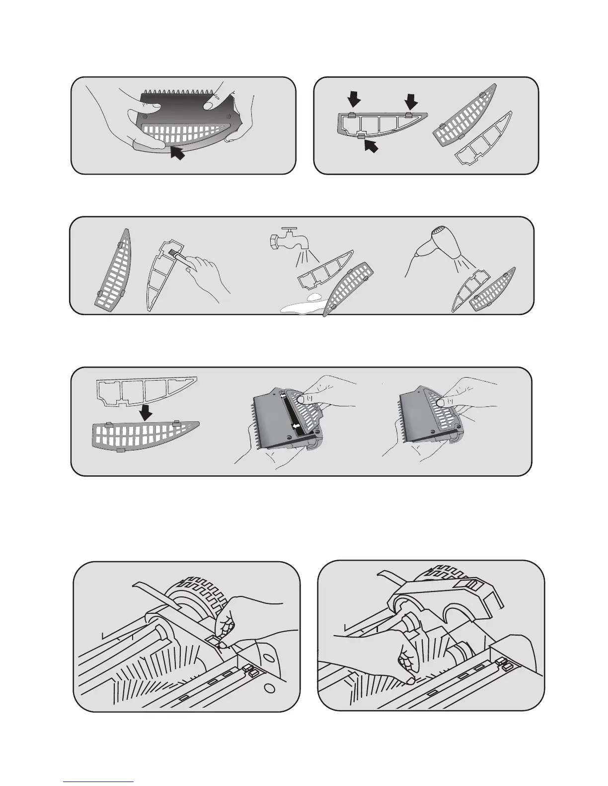 3. Use the Cleaning Brush to gently brush away dust. You may also run the filter under cold water.