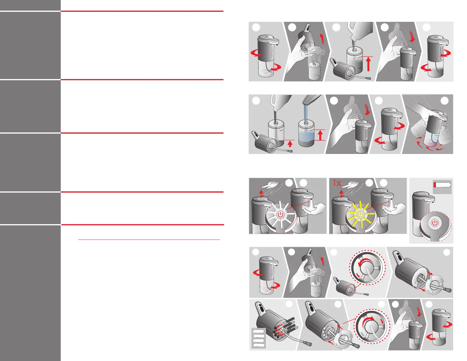 *Press power button quickly to change dispensing volume and to power o (red light). At rst use,