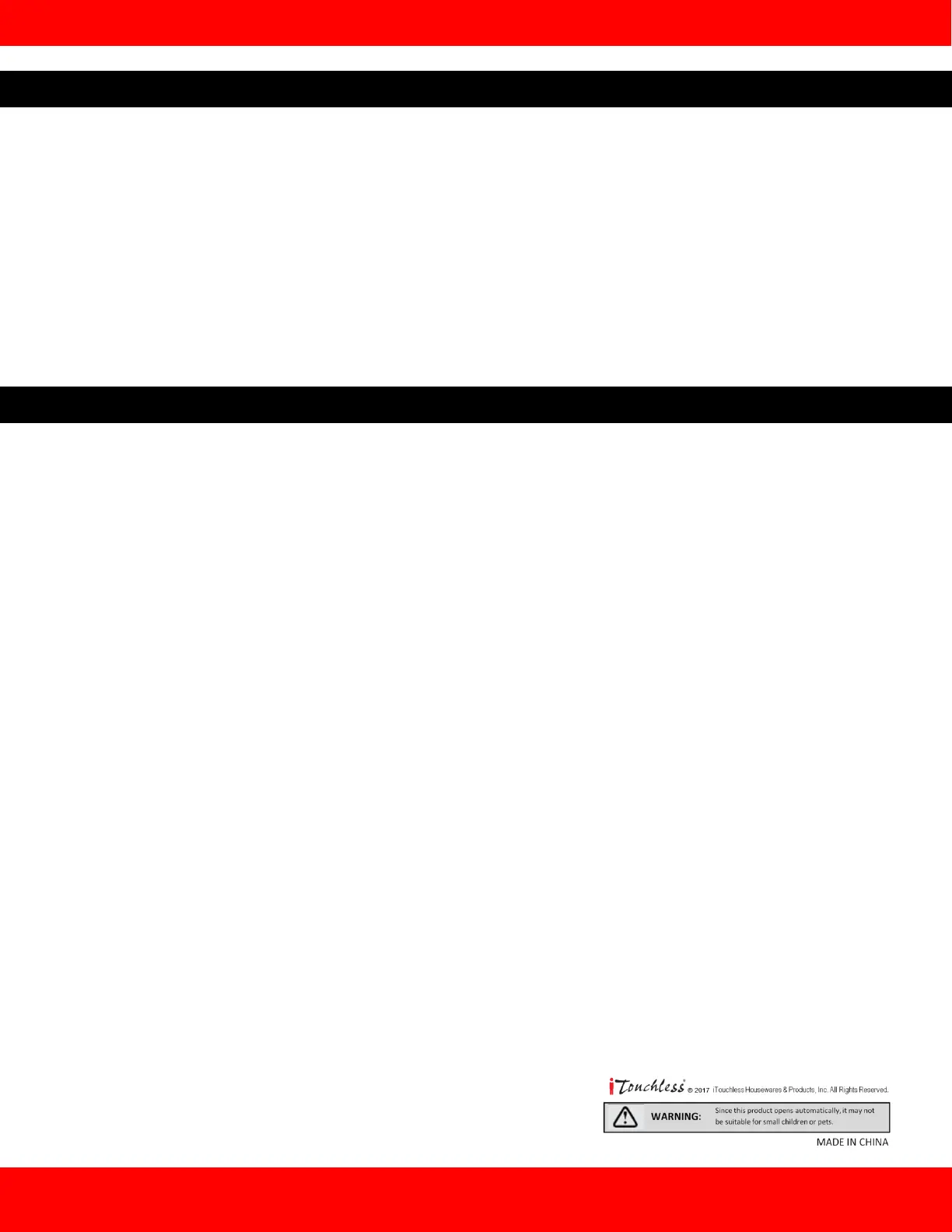 7. No use un adaptador de energía que no esté autorizado por iTouchless; podría ocasionar
