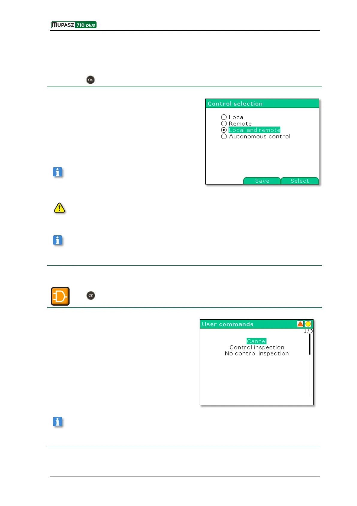 Before setting the control mode one should check if the intended mode is allowed in settings. - Menu >