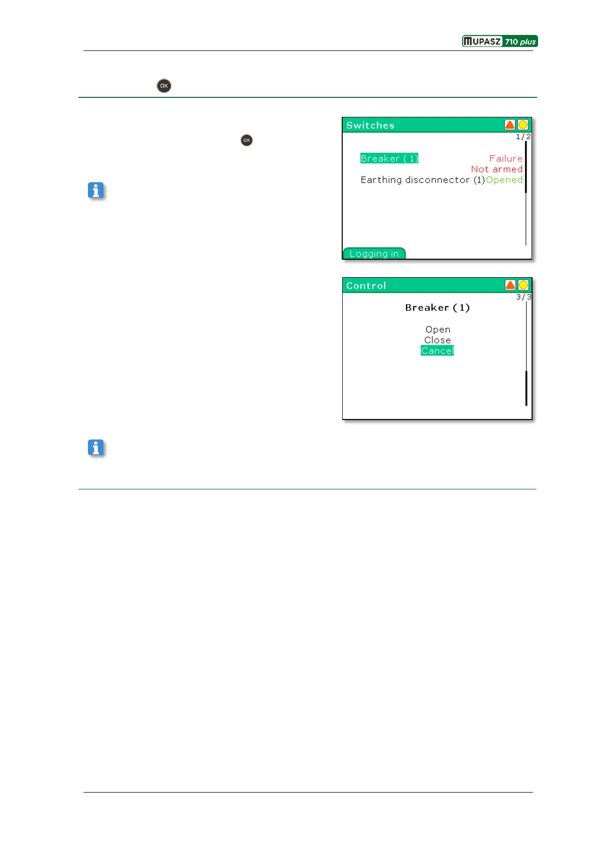 In order for the operation selected from the Switches submenu to be executed the control mode Local or