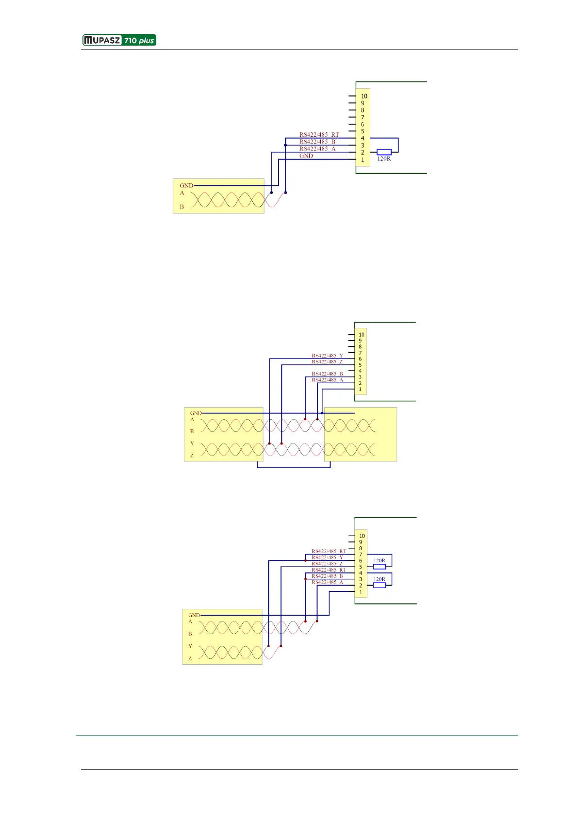 It is also possible to connect devices to 4-wire RS-485 communication network. In this case pins 2, 3, 4 of