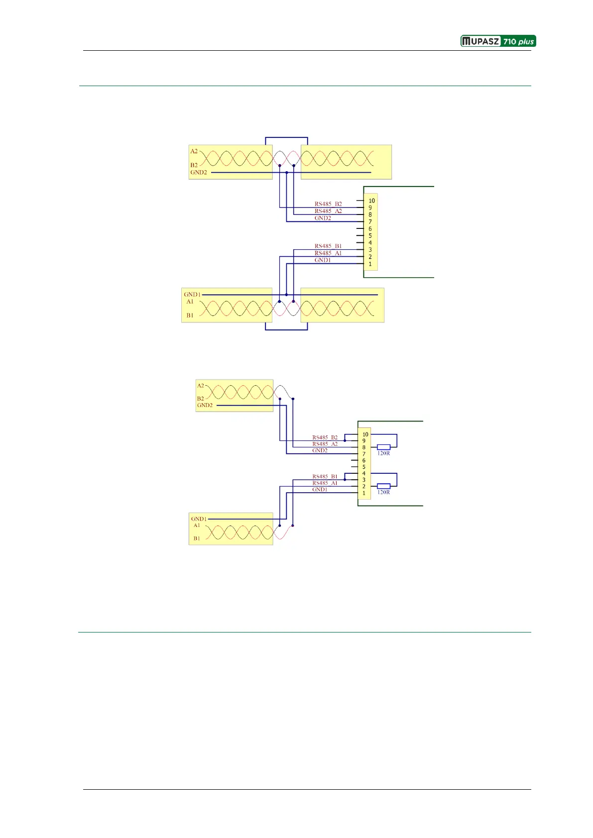 Depending on device position in RS-485 network, following types of wiring of communication ports are used: