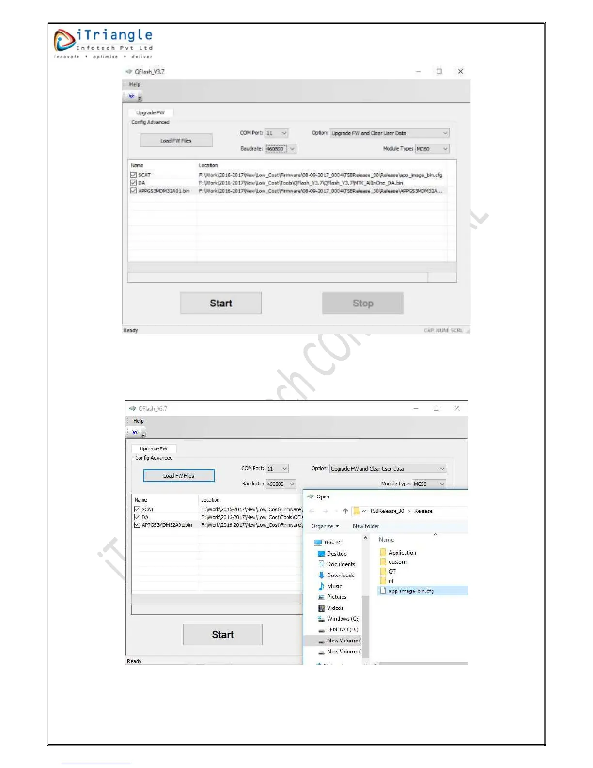 Click on Button “Load FW Files” and select the cfg file whichever you want download to the device.