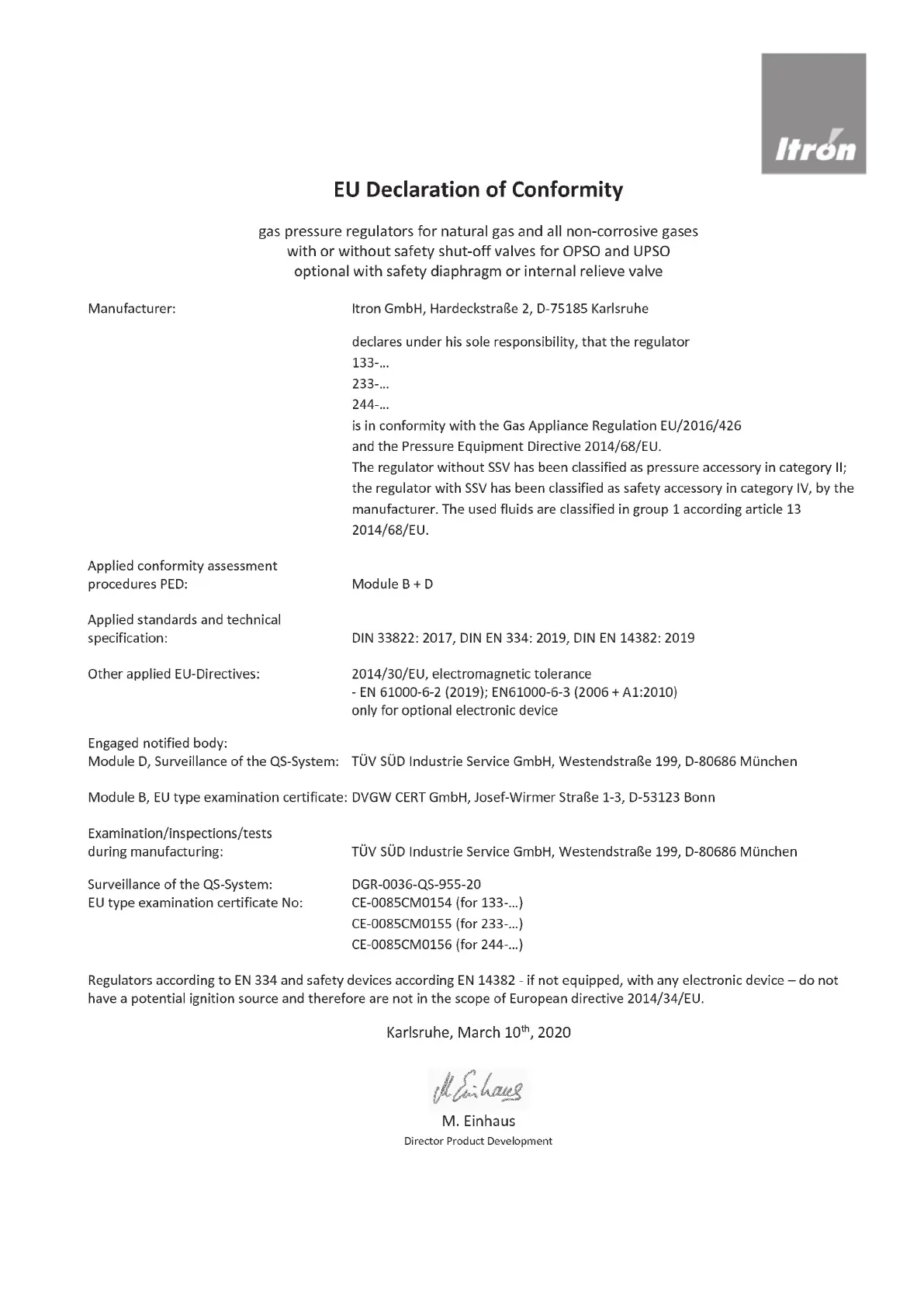 ITRON 133 - EU Declaration of Conformity