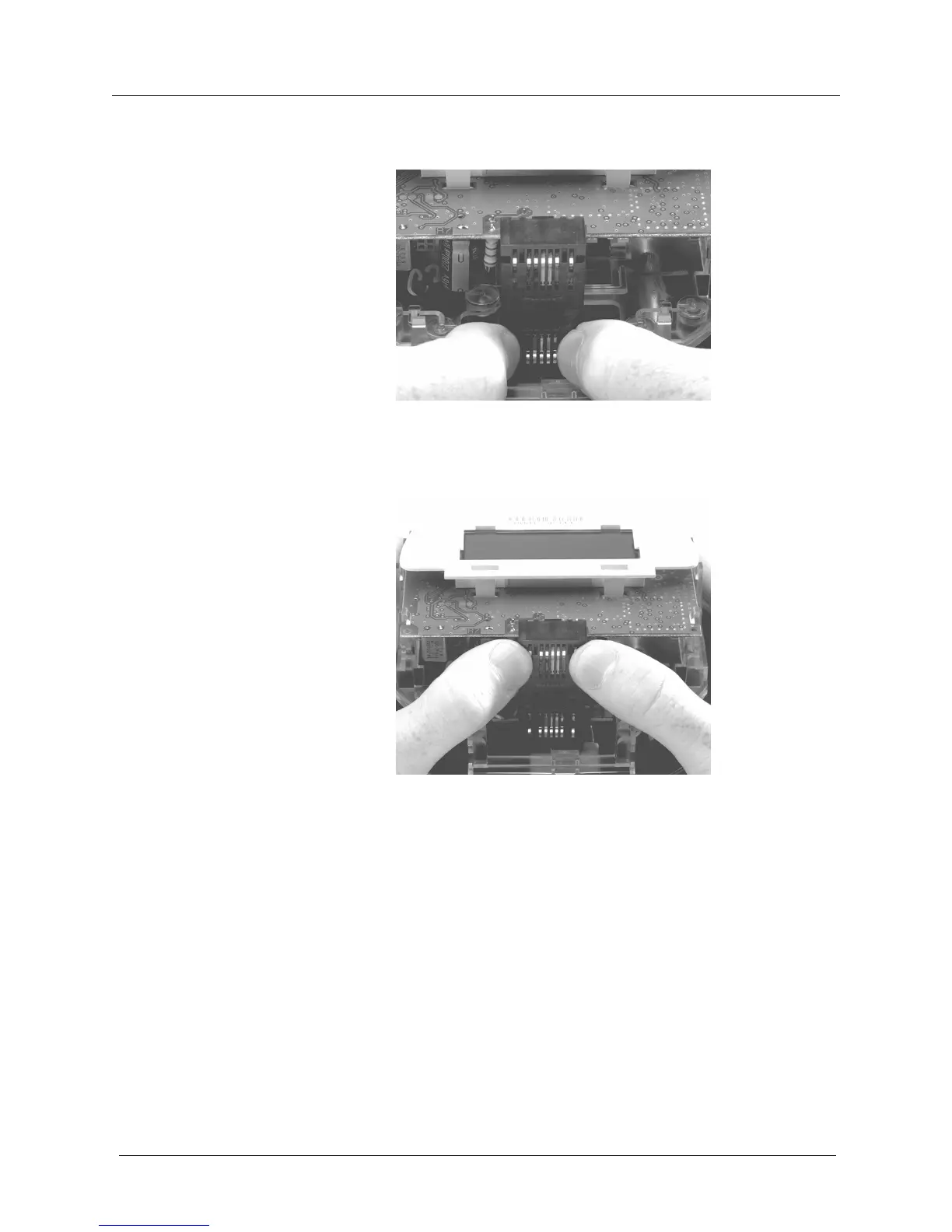 8 Ensure the board-to-board connector is fully seated by pressing firmly in on the middle